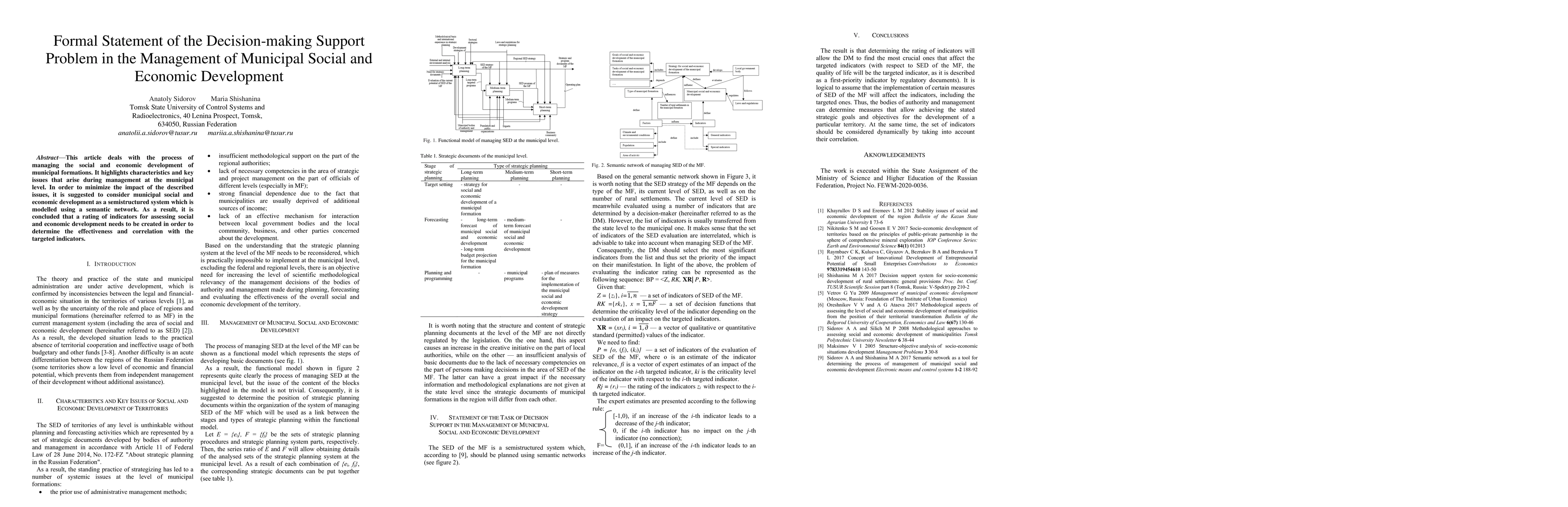 This paper explores the complexities of managing municipal social and economic development, proposing a semistructured system modeled via a semantic network to address these challenges. It concludes with the necessity of creating a rating system for indicators to assess effectiveness and alignment with targeted goals.