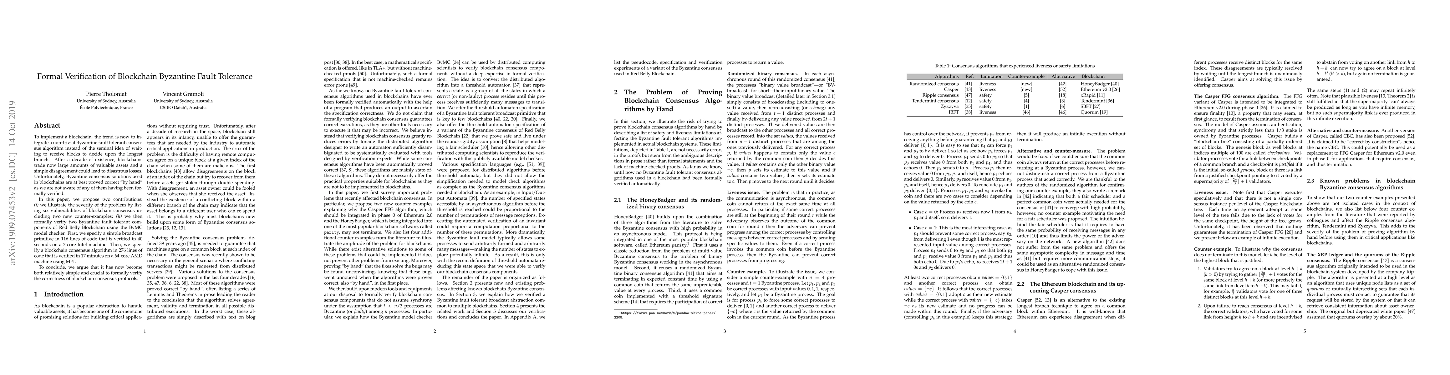 This paper highlights the critical need for formal verification of blockchain Byzantine fault tolerance mechanisms, listing six vulnerabilities and demonstrating the formal verification of two Red Belly Blockchain components using the ByMC model checker. The study concludes that formal verification is now essential for ensuring the correctness of blockchain consensus protocols.