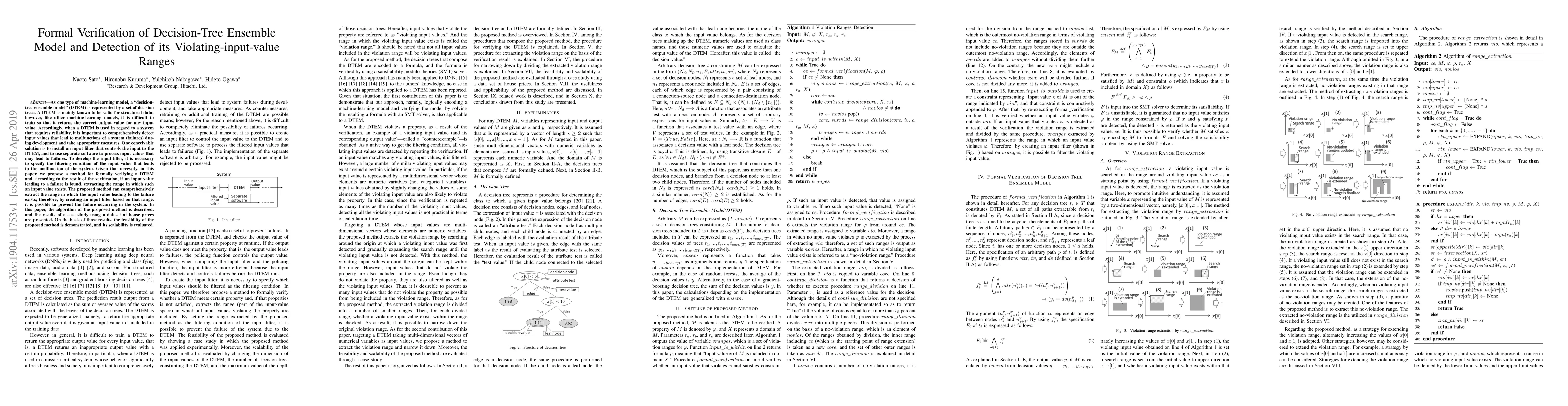 This paper proposes a method to formally verify decision-tree ensemble models and detect input values that lead to malfunctions, enabling the creation of an input filter to prevent failures in systems.