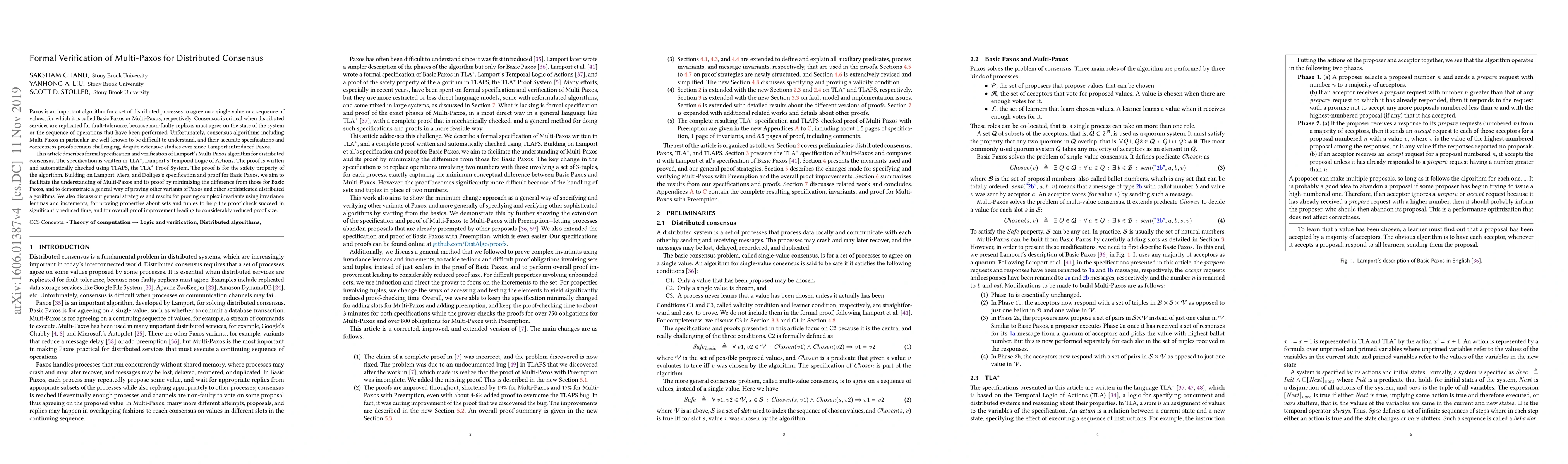 Paxos is an important algorithm for a set of distributed processes to agree on a single value or a sequence of values, for which it is called Basic Paxos or Multi-Paxos, respectively. Consensus is critical when distributed services are replicated for fault-tolerance, because non-faulty replicas must agree on the state of the system or the sequence of operations that have been performed. Unfortunately, consensus algorithms including Multi-Paxos in particular are well-known to be difficult to understand, and their accurate specifications and correctness proofs remain challenging, despite extensive studies ever since Lamport introduced Paxos. This article describes formal specification and verification of Lamport's Multi-Paxos algorithm for distributed consensus. The specification is written in TLA+, Lamport's Temporal Logic of Actions. The proof is written and automatically checked using TLAPS, the TLA+ Proof System. The proof is for the safety property of the algorithm. Building on Lamport, Merz, and Doligez's specification and proof for Basic Paxos, we aim to facilitate the understanding of Multi-Paxos and its proof by minimizing the difference from those for Basic Paxos, and to demonstrate a general way of proving other variants of Paxos and other sophisticated distributed algorithms. We also discuss our general strategies and results for proving complex invariants using invariance lemmas and increments, for proving properties about sets and tuples to help the proof check succeed in significantly reduced time, and for overall proof improvement leading to considerably reduced proof size.