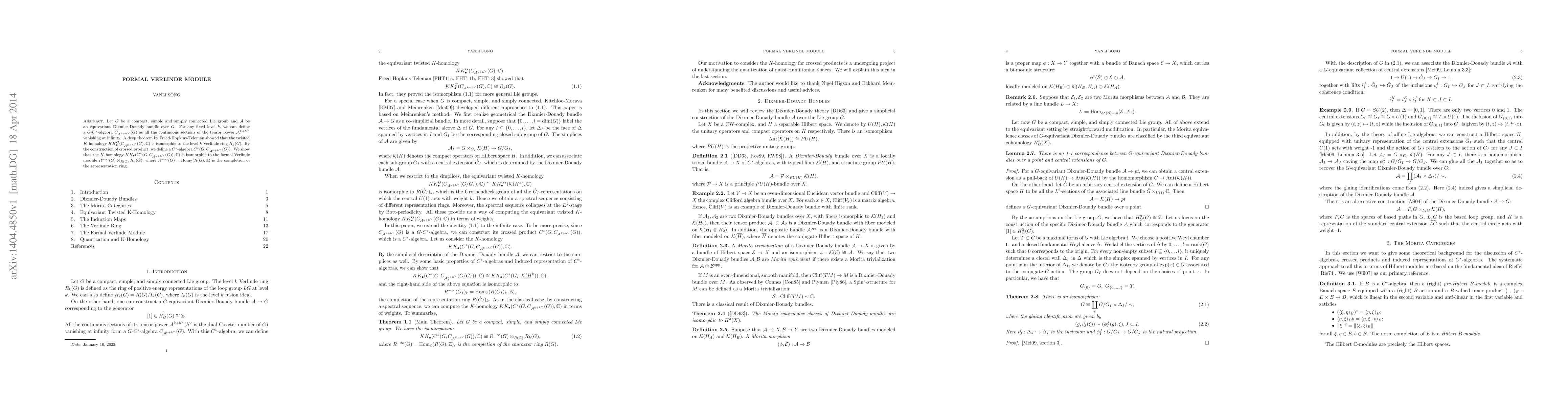 Let G be a compact, simple and simply connected Lie group and $\A$ be an equivariant Dixmier-Douady bundle over G. For any fixed level k, we can define a G-C*-algebra $C_{\A^{k+h}}(G)$ as all the continuous sections of the tensor power $\A^{k+h}$ vanishing at infinity. A deep theorem by Freed-Hopkins-Teleman showed that the twisted K-homology $KK^{G}(C_{\A^{k+h}}(G), \C)$ is isomorphic to the level k Verlinde ring R_{k}(G). By the construction of crossed product, we define a C*-algebra $C^{*}(G,C_{\A^{k+h}}(G))$. We show that the K-homology KK(C^{*}(G,C_{\A^{k+h}}(G)),\C) is isomorphic to the formal Verlinde module $R^{-\infty}(G) \otimes_{R(G)} R_{k}(G)$, where $R^{-\infty}(G) = Hom_{\Z}(R(G),\Z)$ is the completion of the representation ring.