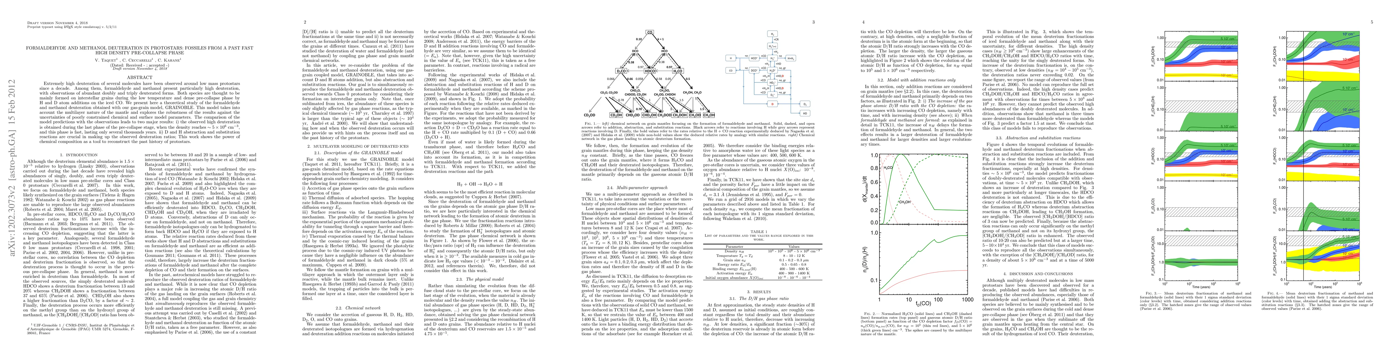 This paper presents a theoretical study using the GRAINOBLE model to investigate the high deuteration of formaldehyde and methanol around low-mass protostars, revealing that the observed high deuteration occurs during a brief, dense pre-collapse phase lasting several thousand years. The study emphasizes the importance of D and H abstraction and substitution reactions in achieving the observed deuteration ratios.