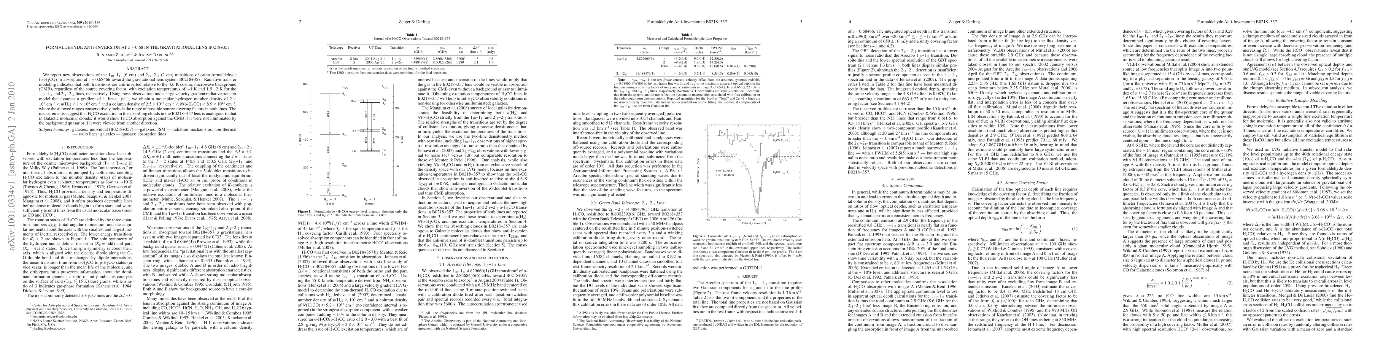 Researchers observe anti-inversion of formaldehyde in absorption at a gravitational lens, suggesting its excitation is similar to Galactic molecular clouds.