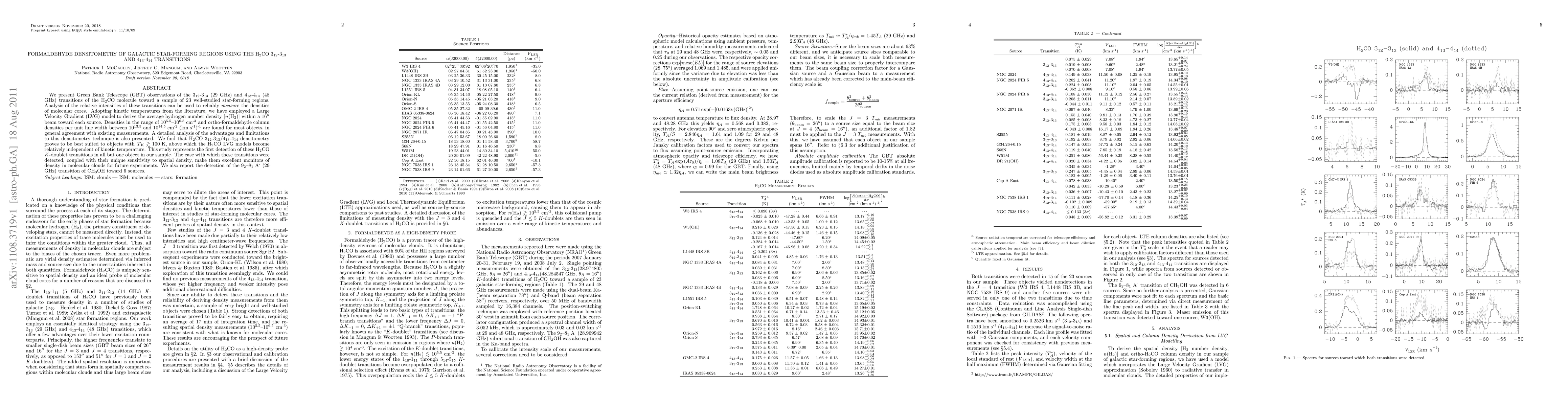 We present Green Bank Telescope (GBT) observations of the 3(12)-3(13) (29 GHz) and 4(13)-4(14) (48 GHz) transitions of the H2CO molecule toward a sample of 23 well-studied star-forming regions. Analysis of the relative intensities of these transitions can be used to reliably measure the densities of molecular cores. Adopting kinetic temperatures from the literature, we have employed a Large Velocity Gradient (LVG) model to derive the average hydrogen number density [n(H2)] within a 16 arcsecond beam toward each source. Densities in the range of 10^{5.5}--10^{6.5} cm^{-3} and ortho-formaldehyde column densities per unit line width between 10^{13.5} and 10^{14.5} cm^{-2} (km s^{-1})^{-1} are found for most objects, in general agreement with existing measurements. A detailed analysis of the advantages and limitations to this densitometry technique is also presented. We find that H2CO 3(12)-3(13)/4(13)-4(14) densitometry proves to be best suited to objects with T_K >~ 100 K, above which the H2CO LVG models become relatively independent of kinetic temperature. This study represents the first detection of these H2CO K-doublet transitions in all but one object in our sample. The ease with which these transitions were detected, coupled with their unique sensitivity to spatial density, make them excellent monitors of density in molecular clouds for future experiments. We also report the detection of the 9_2--8_1 A^- (29 GHz) transition of CH3OH toward 6 sources.