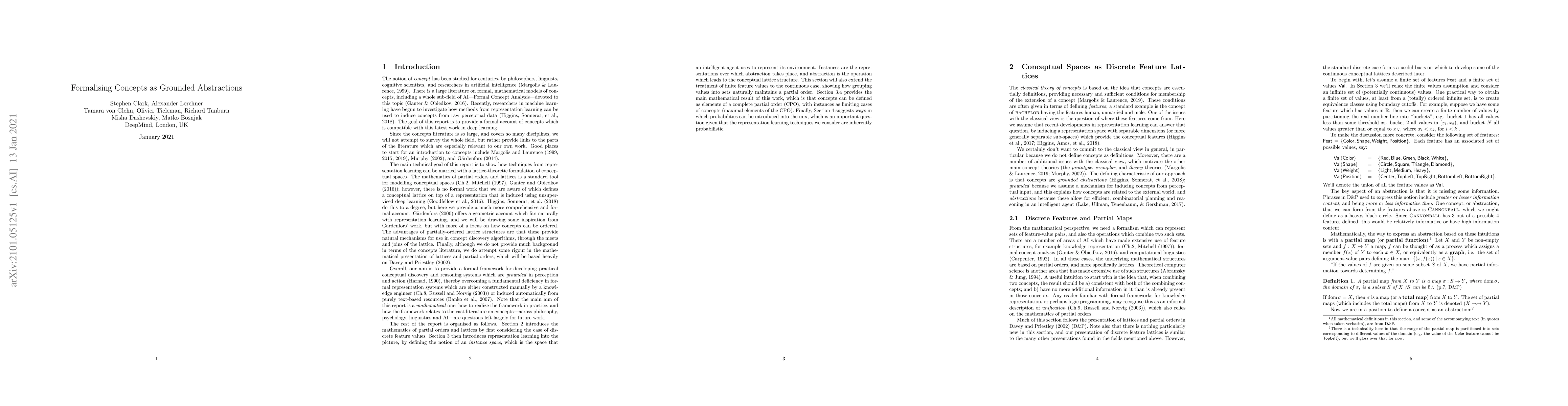 The notion of concept has been studied for centuries, by philosophers, linguists, cognitive scientists, and researchers in artificial intelligence (Margolis & Laurence, 1999). There is a large literature on formal, mathematical models of concepts, including a whole sub-field of AI -- Formal Concept Analysis -- devoted to this topic (Ganter & Obiedkov, 2016). Recently, researchers in machine learning have begun to investigate how methods from representation learning can be used to induce concepts from raw perceptual data (Higgins, Sonnerat, et al., 2018). The goal of this report is to provide a formal account of concepts which is compatible with this latest work in deep learning. The main technical goal of this report is to show how techniques from representation learning can be married with a lattice-theoretic formulation of conceptual spaces. The mathematics of partial orders and lattices is a standard tool for modelling conceptual spaces (Ch.2, Mitchell (1997), Ganter and Obiedkov (2016)); however, there is no formal work that we are aware of which defines a conceptual lattice on top of a representation that is induced using unsupervised deep learning (Goodfellow et al., 2016). The advantages of partially-ordered lattice structures are that these provide natural mechanisms for use in concept discovery algorithms, through the meets and joins of the lattice.