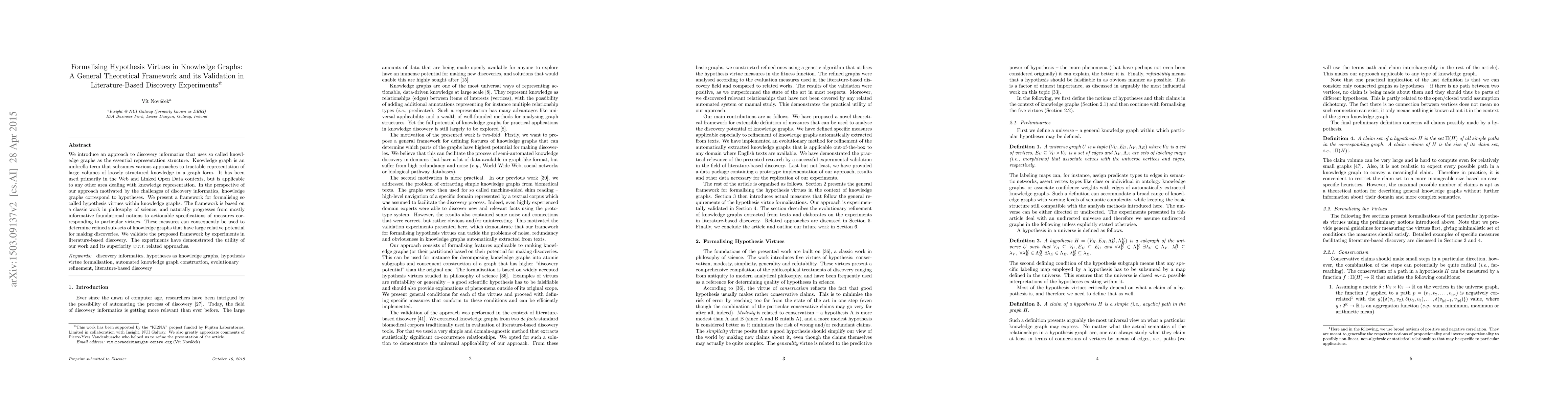 This paper proposes a framework for formalising hypothesis virtues within knowledge graphs, validated through literature-based discovery experiments, demonstrating its effectiveness in identifying knowledge graph subsets with high discovery potential. The approach is grounded in philosophical foundations and outperforms related methods.