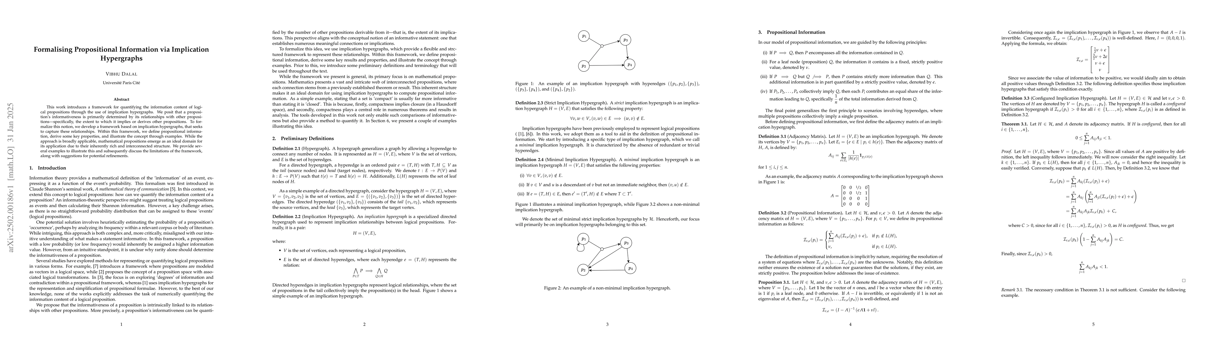 The research introduces a framework for quantifying propositional information via implication hypergraphs, formalizing the notion that a proposition's informativeness is determined by its relationships with other propositions.