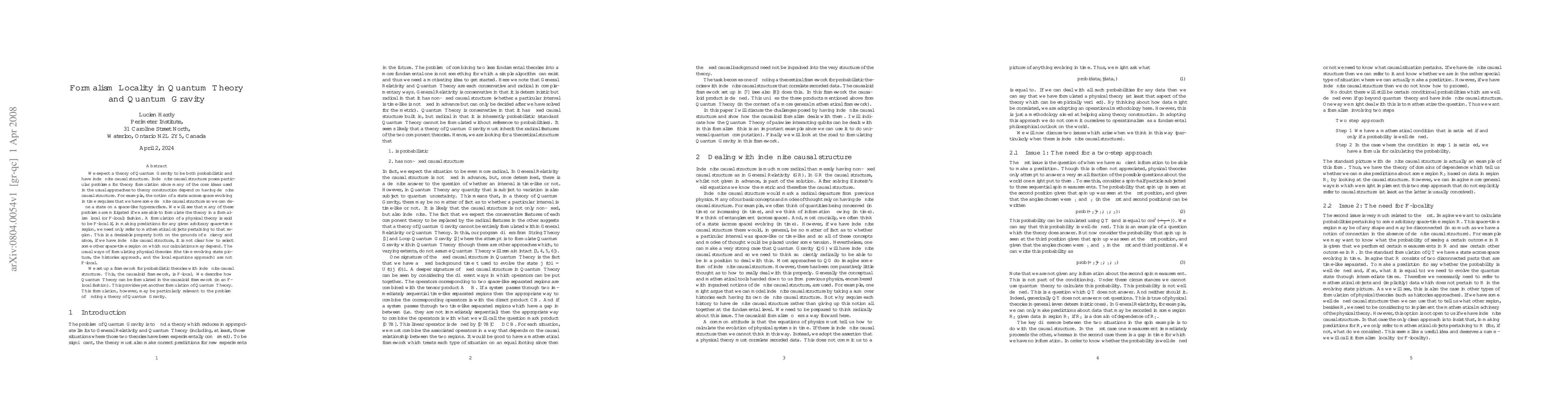 We expect a theory of Quantum Gravity to be both probabilistic and have indefinite causal structure. Indefinite causal structure poses particular problems for theory formulation since many of the core ideas used in the usual approaches to theory construction depend on having definite causal structure. For example, the notion of a state across space evolving in time requires that we have some definite causal structure so we can define a state on a space-like hypersurface. We will see that many of these problems are mitigated if we are able to formulate the theory in a "formalism local" (or F-local) fashion. A formulation of a physical theory is said to be F-local if, in making predictions for any given arbitrary space-time region, we need only refer to mathematical objects pertaining to that region. This is a desirable property both on the grounds of efficiency and since, if we have indefinite causal structure, it is not clear how to select some other space-time region on which our calculations may depend. The usual ways of formulating physical theories (the time evolving state picture, the histories approach, and the local equations approach) are not F-local. We set up a framework for probabilistic theories with indefinite causal structure. This, the causaloid framework, is F-local. We describe how Quantum Theory can be formulated in the causaloid framework (in an F-local fashion). This provides yet another formulation of Quantum Theory. This formulation, however, may be particularly relevant to the problem of finding a theory of Quantum Gravity.