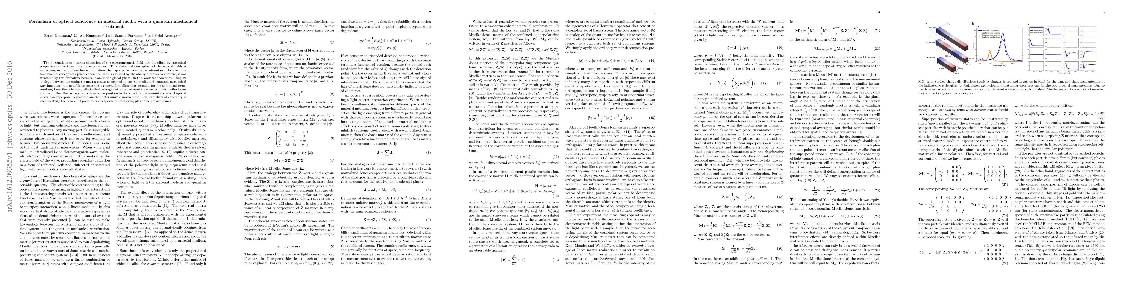 Researchers develop a new formalism to describe optical coherence in material media, combining deterministic matrix states with quantum mechanical wavefunctions to account for global phase effects and study the combined polarimetric response of interfering nanoantennas.