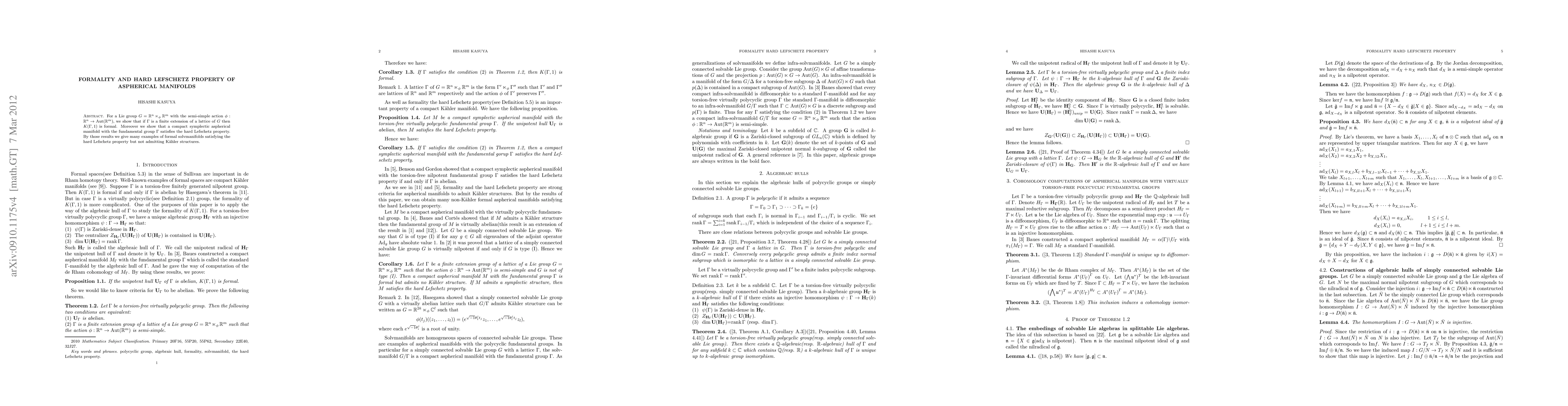 This paper demonstrates that for a Lie group with a semi-simple action, if $\Gamma$ is a finite extension of a lattice, then the $K(\Gamma, 1)$ space is formal. It further shows that compact symplectic aspherical manifolds with such $\Gamma$ satisfy the hard Lefschetz property, providing examples of formal solvmanifolds with this property but without Kähler structures.