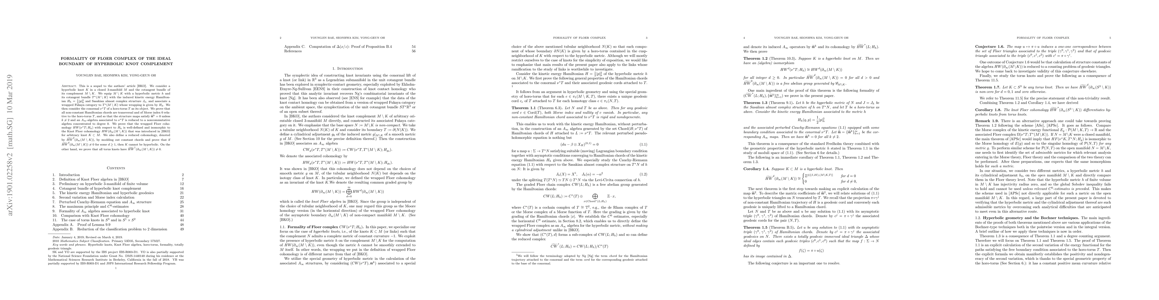 This is a sequel to the authors' article [BKO](arXiv:1901.02239). We consider a hyperbolic knot $K$ in a closed 3-manifold $M$ and the cotangent bundle of its complement $M \setminus K$. We equip $M \setminus K$ with a hyperbolic metric $h$ and its cotangent bundle $T^*(M \setminus K)$ with the induced kinetic energy Hamiltonian $H_h = \frac{1}{2} |p|_h^2$ and Sasakian almost complex structure $J_h$, and associate a wrapped Fukaya category to $T^*(M\setminus K)$ whose wrapping is given by $H_h$. We then consider the conormal $\nu^*T$ of a horo-torus $T$ as its object. We prove that all non-constant Hamiltonian chords are transversal and of Morse index 0 relative to the horo-torus $T$, and so that the structure maps satisfy $\widetilde{\mathfrak m}^k = 0$ unless $k \neq 2$ and an $A_\infty$-algebra associated to $\nu^*T$ is reduced to a noncommutative algebra concentrated to degree 0. We prove that the wrapped Floer cohomology $HW(\nu^*T; H_h)$ with respect to $H_h$ is well-defined and isomorphic to the Knot Floer cohomology $HW(\partial_\infty(M \setminus K))$ that was introduced in [BKO] for arbitrary knot $K \subset M$. We also define a reduced cohomology, denoted by $\widetilde{HW}^d(\partial_\infty(M \setminus K))$, by modding out constant chords and prove that if $\widetilde{HW}^d(\partial_\infty(M \setminus K))\neq 0$ for some $d \geq 1$, then $K$ cannot be hyperbolic. On the other hand, we prove that all torus knots have $\widetilde{HW}^1(\partial_\infty(M \setminus K)) \neq 0$.