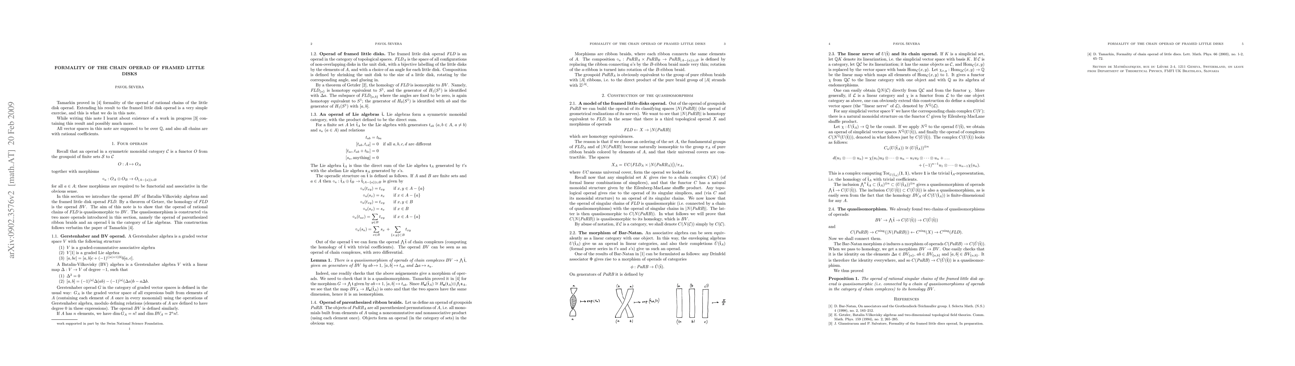 The paper introduces a quasi-isomorphism between the operad of singular chains of the framed little disk operad and its homology, extending Tamarkin's formality to the framed case.