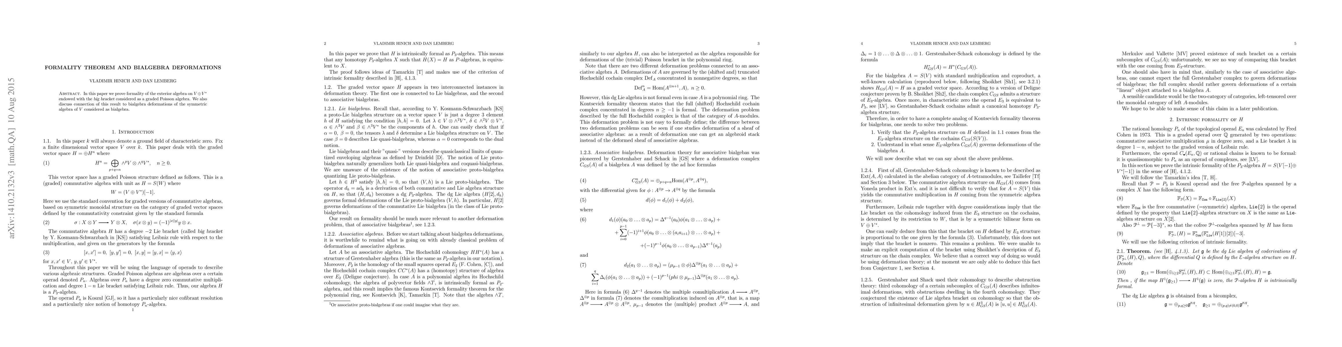 This paper proves the formality of the exterior algebra on V+V* with the big bracket as a graded Poisson algebra and explores its connection to bialgebra deformations of the symmetric algebra of V.