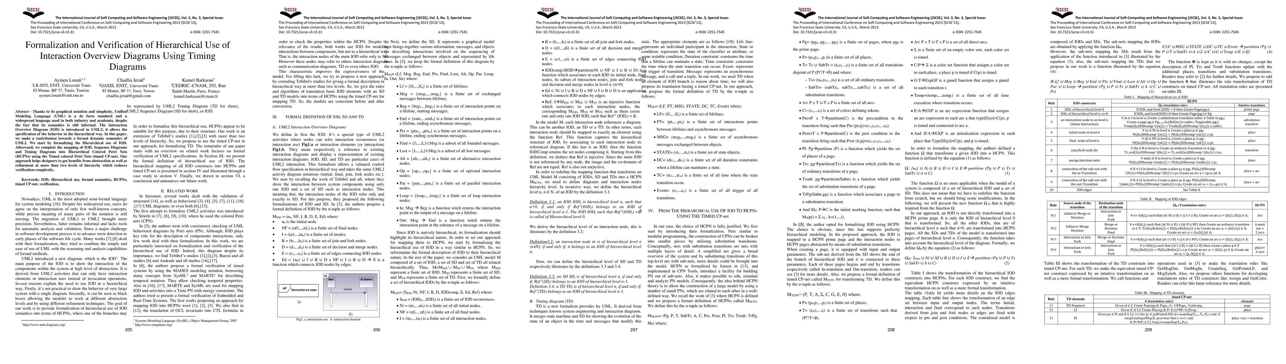 This paper formalizes the hierarchical use of Interaction Overview Diagrams (IOD) in UML2 and maps them, along with Sequence and Timing Diagrams, into Hierarchical Colored Petri Nets (HCPNs). This approach aids designers in managing abstraction and refinement across multiple levels, thereby simplifying verification complexity.
