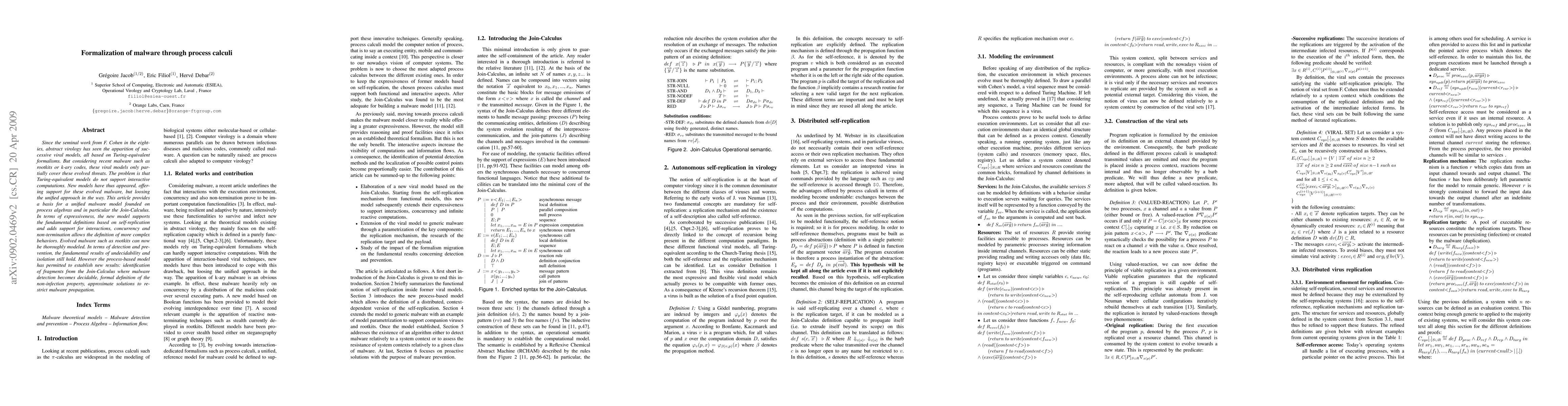 A new malware model based on process calculi provides a unified approach to modeling evolved threats like rootkits, adding support for interactions, concurrency, and non-termination. The model enables new results in detection and prevention, including decidable fragments and formal definitions of properties related to malware propagation.