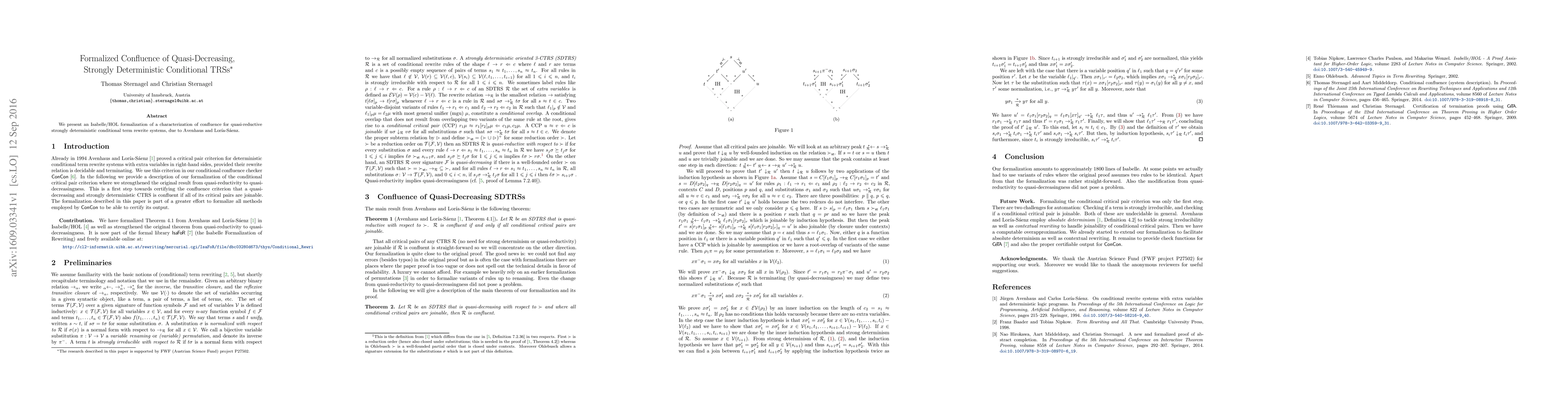 We present an Isabelle/HOL formalization of a characterization of confluence for quasi-reductive strongly deterministic conditional term rewrite systems, due to Avenhaus and Lor\'ia-S\'aenz.