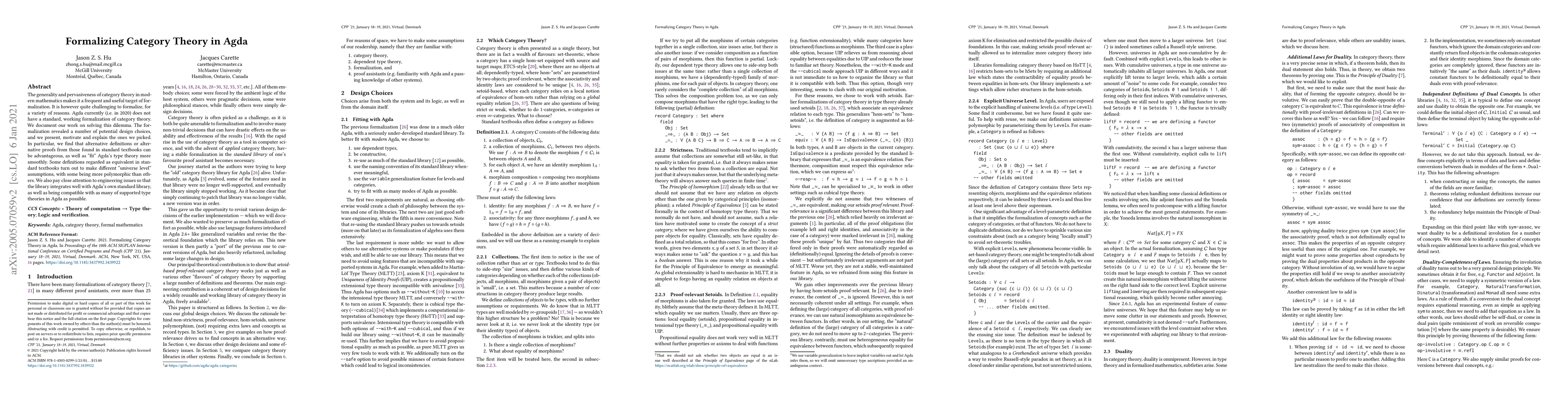 The generality and pervasiness of category theory in modern mathematics makes it a frequent and useful target of formalization. It is however quite challenging to formalize, for a variety of reasons. Agda currently (i.e. in 2020) does not have a standard, working formalization of category theory. We document our work on solving this dilemma. The formalization revealed a number of potential design choices, and we present, motivate and explain the ones we picked. In particular, we find that alternative definitions or alternative proofs from those found in standard textbooks can be advantageous, as well as "fit" Agda's type theory more smoothly. Some definitions regarded as equivalent in standard textbooks turn out to make different "universe level" assumptions, with some being more polymorphic than others. We also pay close attention to engineering issues so that the library integrates well with Agda's own standard library, as well as being compatible with as many of supported type theories in Agda as possible.