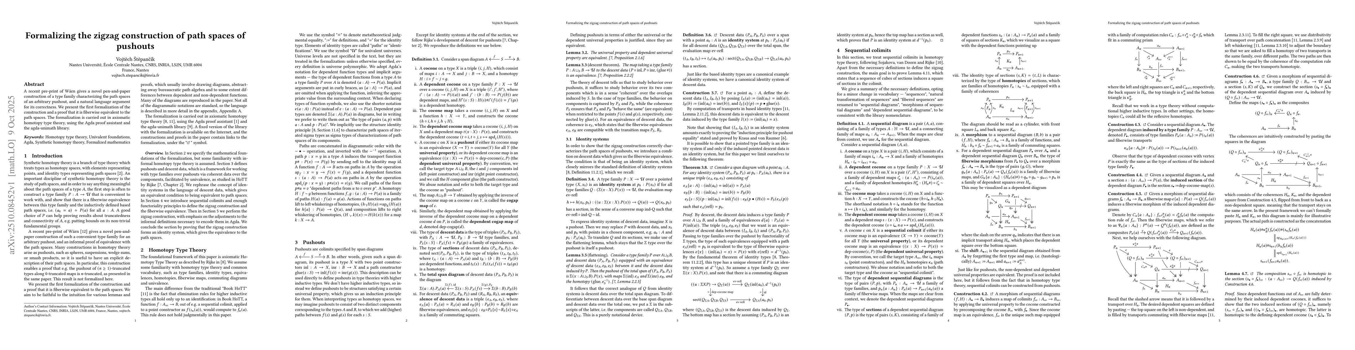 Developed a formal framework within HoTT to rigorously prove coherence conditions for path spaces in pushouts, including the construction of dependent paths and the verification of homotopy invariance properties.