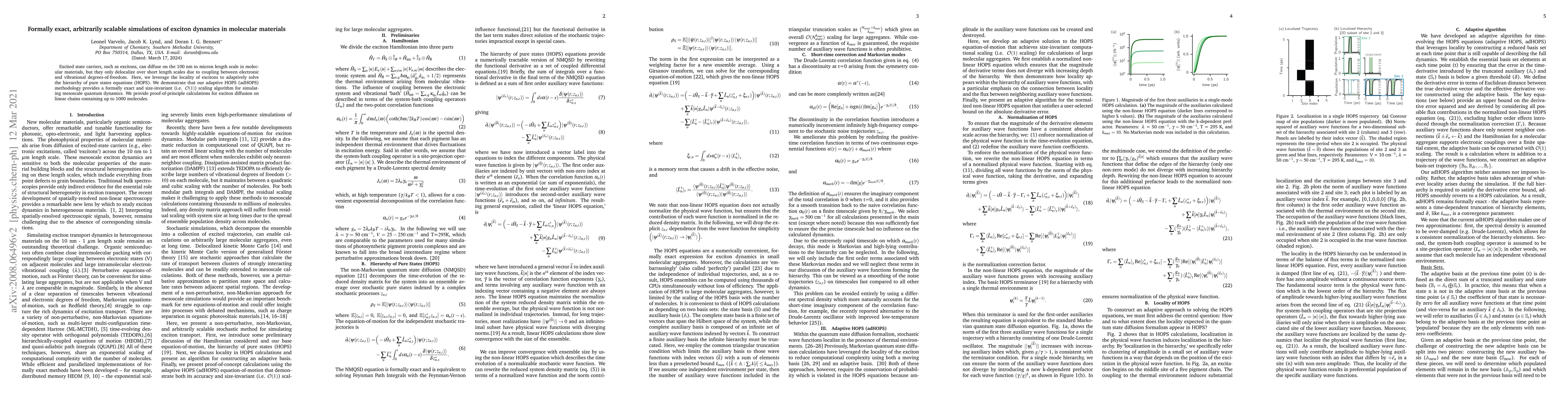 The development of an adaptive algorithm (adHOPS) that ensures formally exact solutions to quantum state time evolution coupled to a non-Markovian thermal reservoir, while achieving size-invariant (O(1)) scaling for large molecular aggregates.