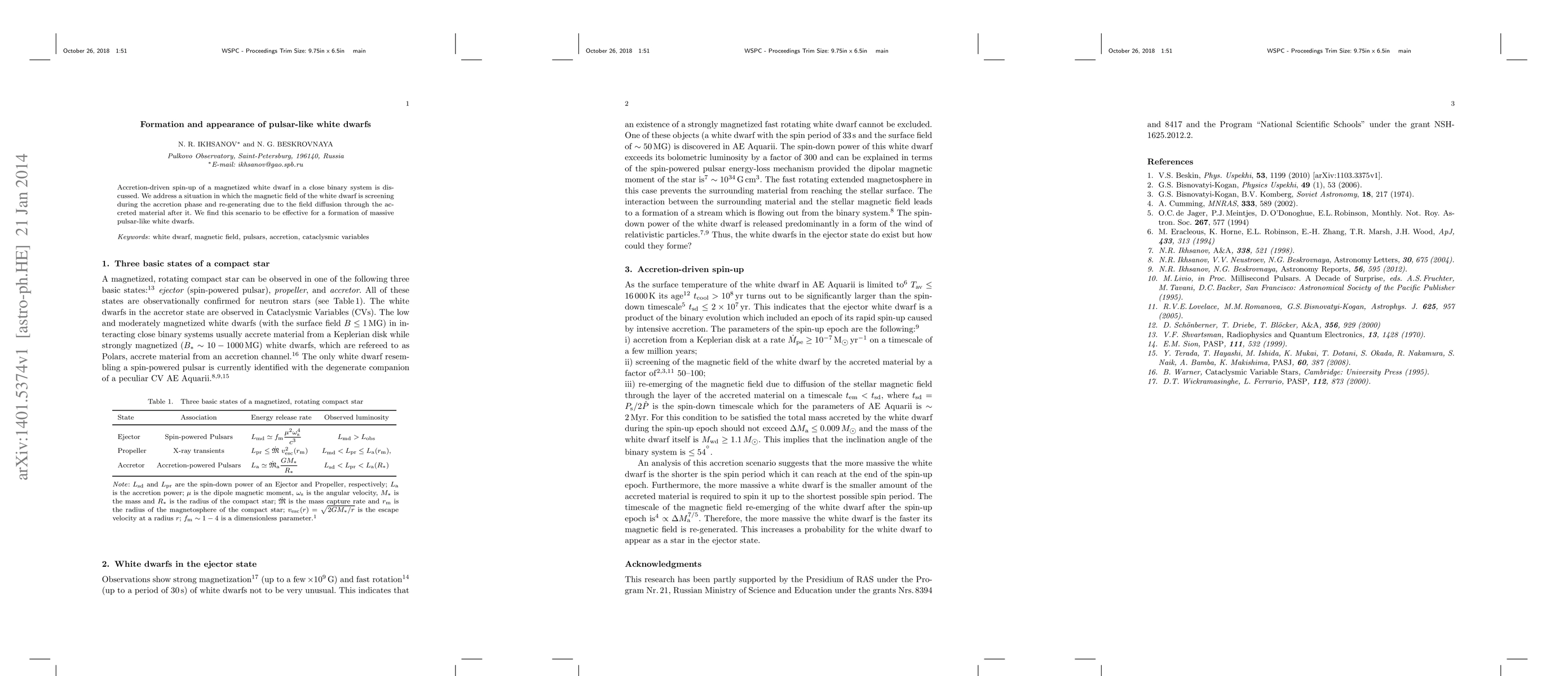 Summary: This paper explores the formation of massive pulsar-like white dwarfs through accretion-driven spin-up in close binary systems, where magnetic field regeneration via field diffusion in accreted material plays a crucial role. The study suggests this mechanism is effective for creating such unique stellar objects.