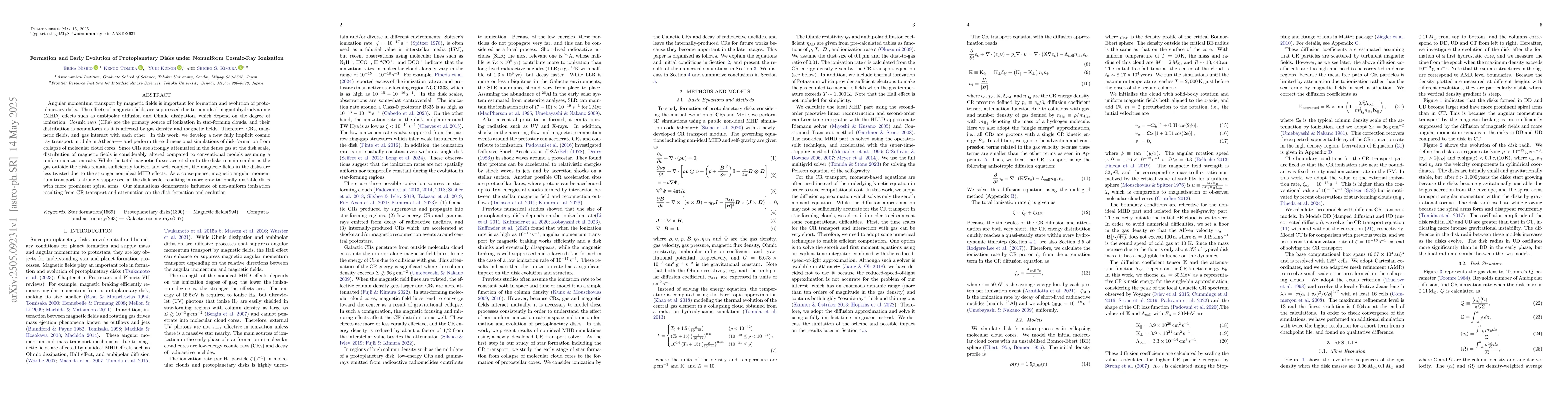 This work distinguishes itself by considering nonuniform cosmic-ray ionization, which has not been extensively explored in previous disk formation and evolution studies.