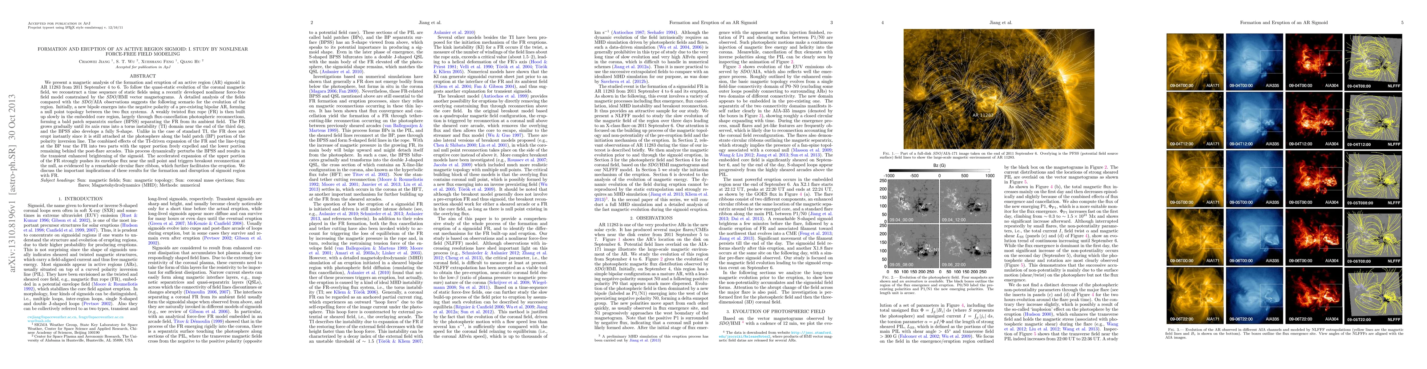 This paper uses nonlinear force-free field modeling to analyze the formation and eruption of an active region sigmoid in AR 11283. The study reveals a gradual buildup of a twisted flux rope through photospheric reconnections, which eventually undergoes a torus instability, leading to a partial eruption and transient brightening before a breakout reconnection triggers a flare.
