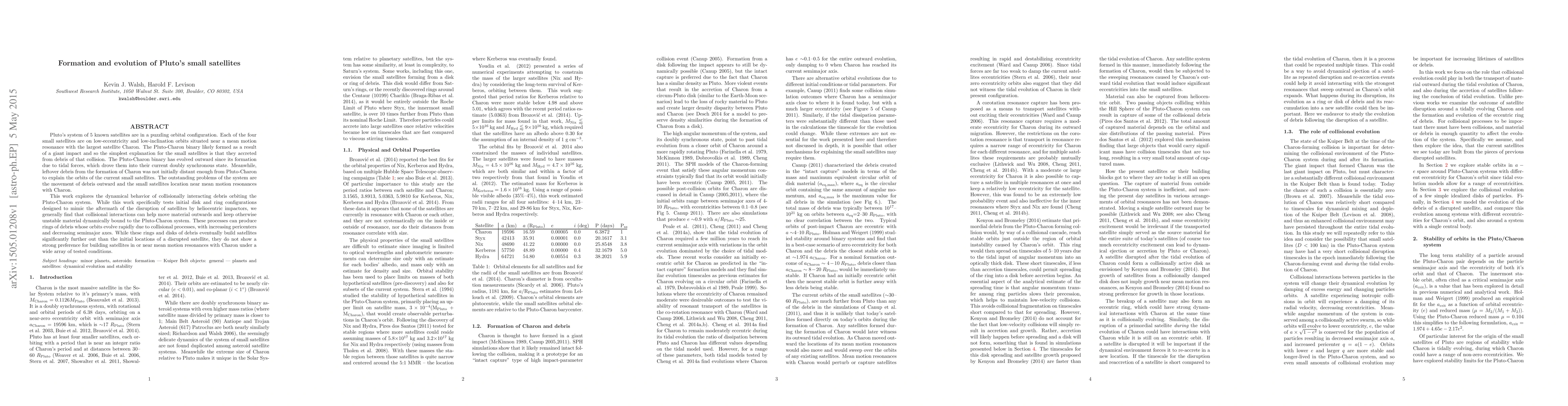 This paper investigates the formation and evolution of Pluto's small satellites, suggesting that collisional interactions among debris from a giant impact can move material outward and maintain it dynamically bound to the Pluto-Charon system, though it finds no strong evidence for the formation of satellites in mean motion resonances with Charon.