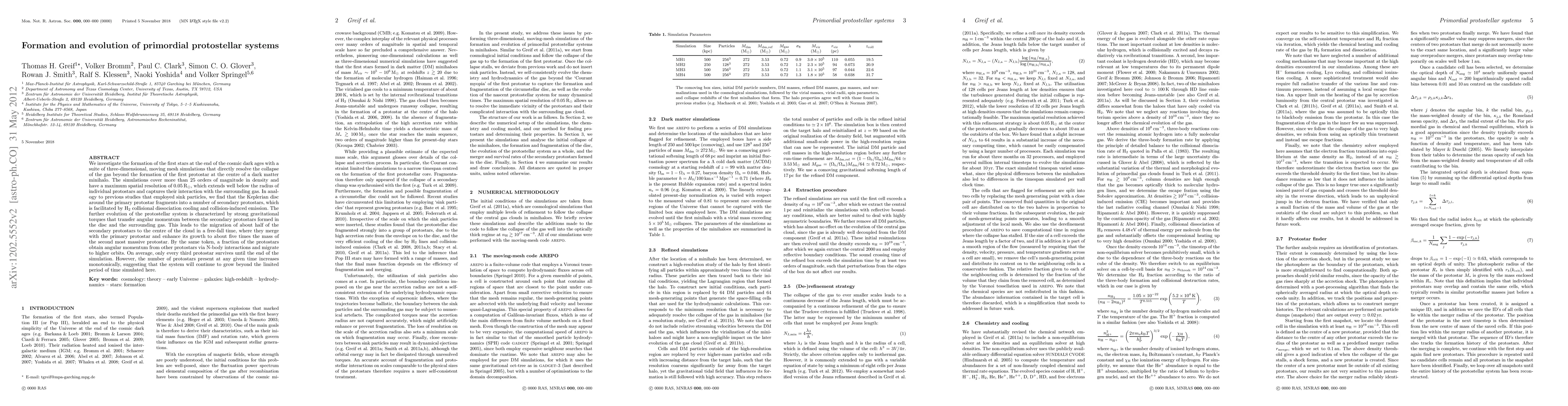 We investigate the formation of the first stars at the end of the cosmic dark ages with a suite of three-dimensional, moving mesh simulations that directly resolve the collapse of the gas beyond the formation of the first protostar at the centre of a dark matter minihalo. The simulations cover more than 25 orders of magnitude in density and have a maximum spatial resolution of 0.05 R_sun, which extends well below the radius of individual protostars and captures their interaction with the surrounding gas. In analogy to previous studies that employed sink particles, we find that the Keplerian disc around the primary protostar fragments into a number of secondary protostars, which is facilitated by H2 collisional dissociation cooling and collision-induced emission. The further evolution of the protostellar system is characterized by strong gravitational torques that transfer angular momentum between the secondary protostars formed in the disc and the surrounding gas. This leads to the migration of about half of the secondary protostars to the centre of the cloud in a free-fall time, where they merge with the primary protostar and enhance its growth to about five times the mass of the second most massive protostar. By the same token, a fraction of the protostars obtain angular momentum from other protostars via N-body interactions and migrate to higher orbits. On average, only every third protostar survives until the end of the simulation. However, the number of protostars present at any given time increases monotonically, suggesting that the system will continue to grow beyond the limited period of time simulated here.