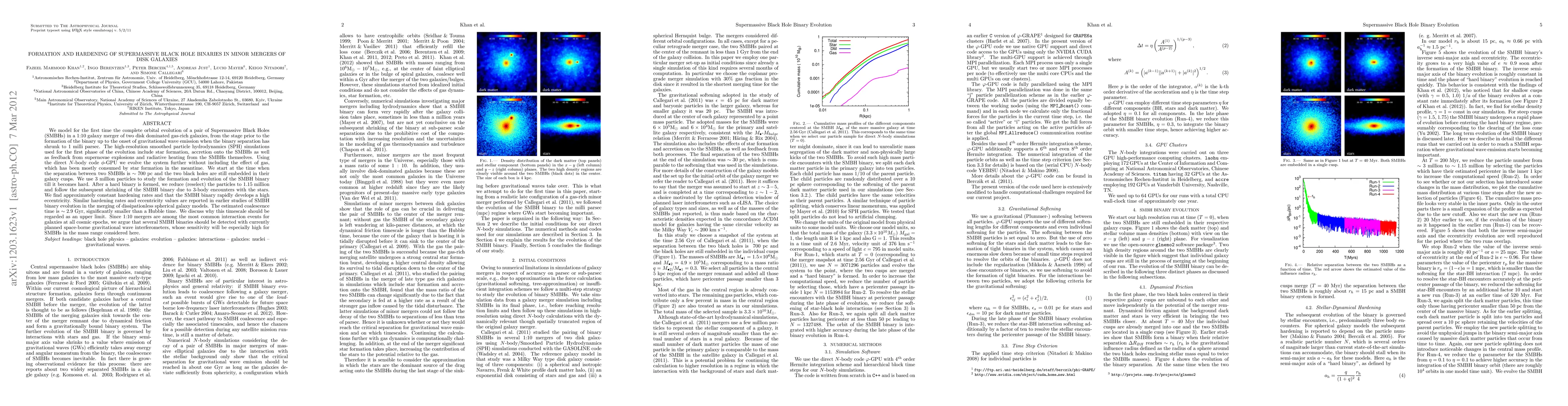 We model for the first time the complete orbital evolution of a pair of Supermassive Black Holes (SMBHs) in a 1:10 galaxy merger of two disk dominated gas-rich galaxies, from the stage prior to the formation of the binary up to the onset of gravitational wave emission when the binary separation has shrunk to 1 milli parsec. The high-resolution smoothed particle hydrodynamics (SPH) simulations used for the first phase of the evolution include star formation, accretion onto the SMBHs as well as feedback from supernovae explosions and radiative heating from the SMBHs themselves. Using the direct N-body code \phi-GPU we evolve the system further without including the effect of gas, which has been mostly consumed by star formation in the meantime. We start at the time when the separation between two SMBHs is ~ 700 pc and the two black holes are still embedded in their galaxy cusps. We use 3 million particles to study the formation and evolution of the SMBH binary till it becomes hard. After a hard binary is formed, we reduce (reselect) the particles to 1.15 million and follow the subsequent shrinking of the SMBH binary due to 3-body encounters with the stars. We find approximately constant hardening rates and that the SMBH binary rapidly develops a high eccentricity. Similar hardening rates and eccentricity values are reported in earlier studies of SMBH binary evolution in the merging of dissipation-less spherical galaxy models. The estimated coalescence time is ~ 2.9 Gyr, significantly smaller than a Hubble time. We discuss why this timescale should be regarded as an upper limit. Since 1:10 mergers are among the most common interaction events for galaxies at all cosmic epochs, we argue that several SMBH binaries should be detected with currently planned space-borne gravitational wave interferometers, whose sensitivity will be especially high for SMBHs in the mass range considered here.