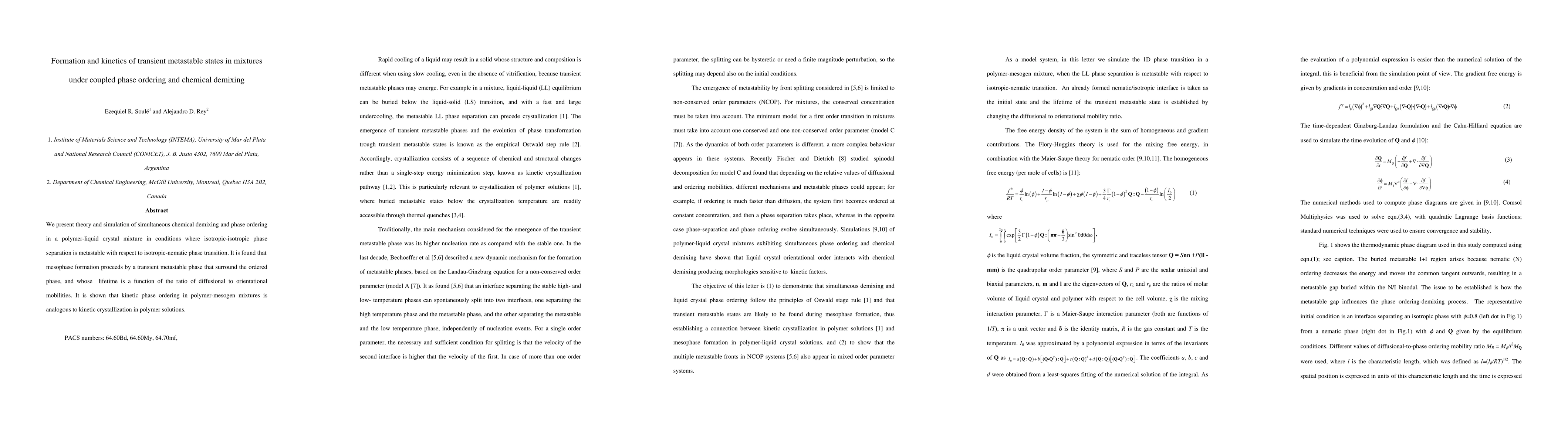 This paper develops a theoretical and simulation framework to study the formation and kinetics of transient metastable states in polymer-liquid crystal mixtures undergoing coupled phase ordering and chemical demixing. It reveals that mesophase formation involves a transient metastable phase, whose lifetime depends on the ratio of diffusional to orientational mobilities, and compares this process to kinetic crystallization in polymer solutions.