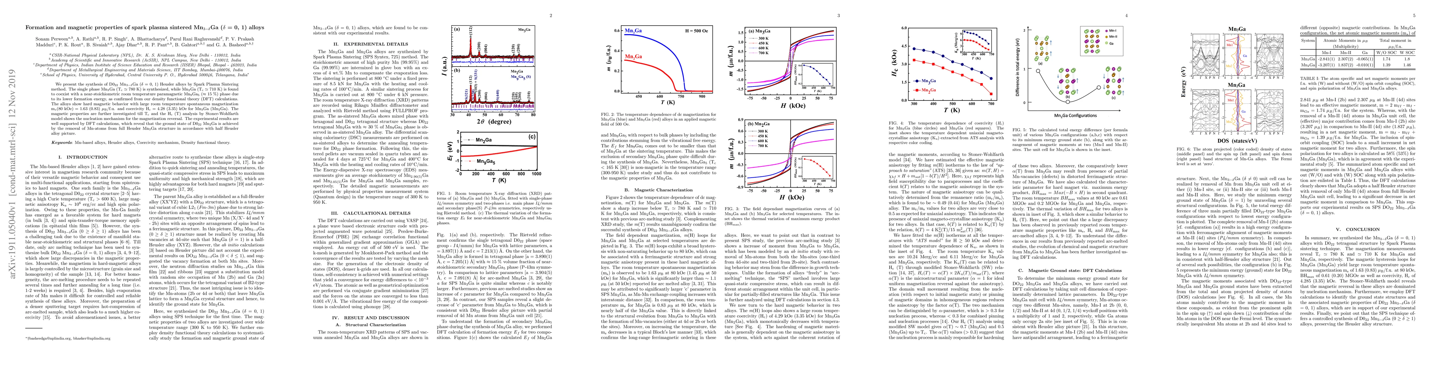 We present the synthesis of D0$_{22}$ Mn$_{3 - \delta}$Ga ($\delta$ = 0, 1) Heusler alloys by Spark Plasma Sintering method. The single phase Mn$_3$Ga (T$_\mathrm{c}$ $\simeq$ 780 K) is synthesized, while Mn$_2$Ga (T$_\mathrm{c}$ $\simeq$ 710 K) is found to coexist with a near-stoichiometric room temperature paramagnetic Mn$_9$Ga$_5$~($\approx$ 15 \%) phase due to its lower formation energy, as confirmed from our density functional theory (DFT) calculations. The alloys show hard magnetic behavior with large room temperature spontaneous magnetization m$_s$(80 kOe) = 1.63 (0.83) $\mu_\mathrm{B}$/f.u. and coercivity H$_\mathrm{c}$ = 4.28 (3.35) kOe for Mn$_3$Ga (Mn$_2$Ga). The magnetic properties are further investigated till T$_\mathrm{c}$ and the H$_\mathrm{c}$ (T) analysis by Stoner-Wohlfarth model shows the nucleation mechanism for the magnetization reversal. The experimental results are well supported by DFT calculations, which reveal that the ground state of D0$_{22}$ Mn$_2$Ga is achieved by the removal of Mn-atoms from full Heusler Mn$_3$Ga structure in accordance with half Heusler alloy picture.