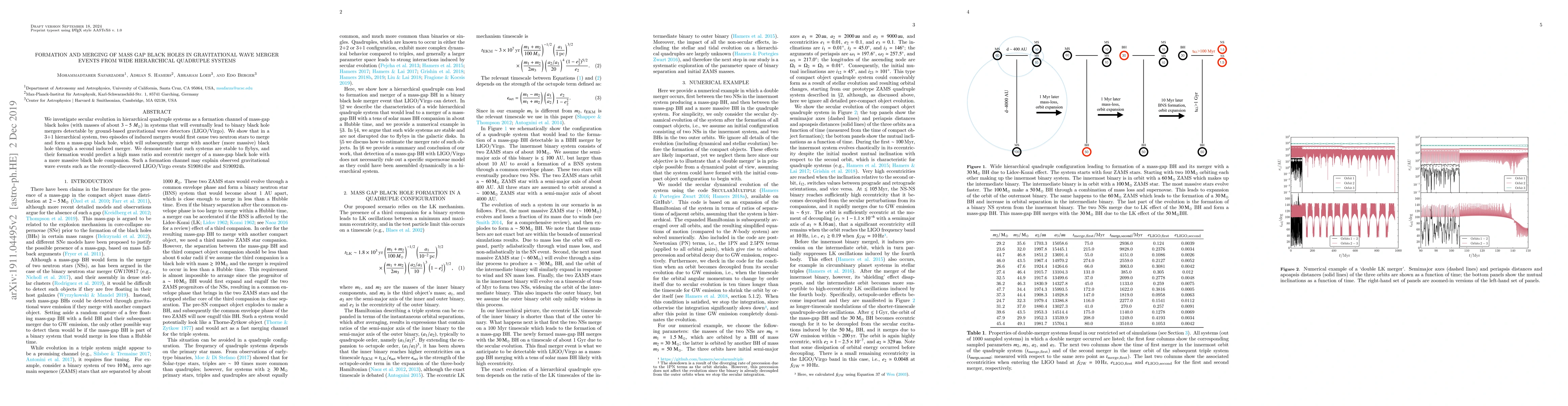 This paper explores the formation of mass-gap black holes in gravitational wave events through secular evolution in hierarchical quadruple systems, predicting high mass ratio and eccentric mergers detectable by LIGO/Virgo. It suggests these systems could explain recent LIGO/Virgo events like S190814bv and S190924h.