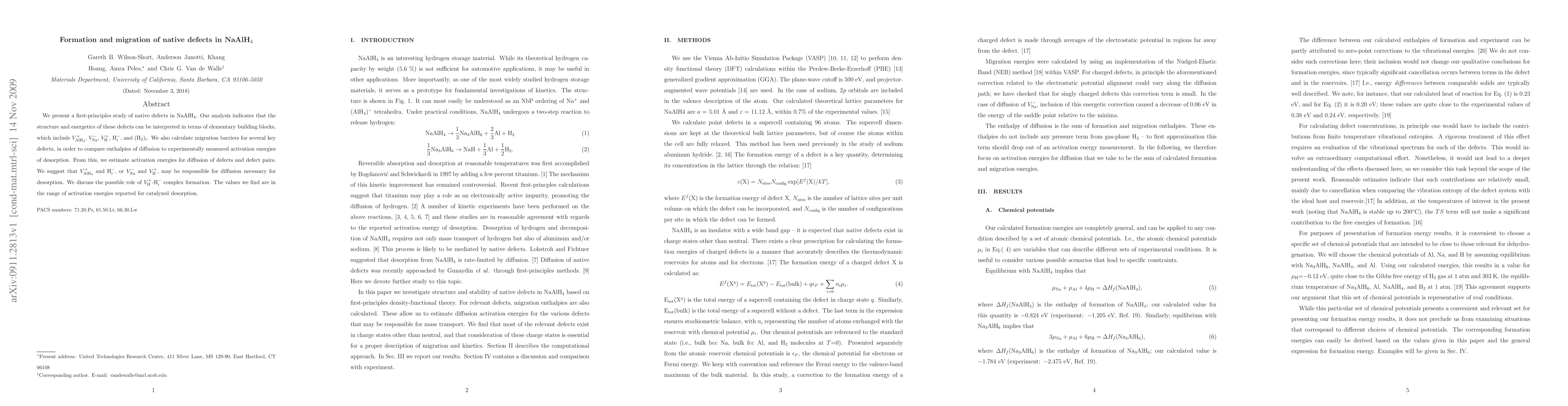 We present a first-principles study of native defects in NaAlH$_4$. Our analysis indicates that the structure and energetics of these defects can be interpreted in terms of elementary building blocks, which include $V_{\rm{AlH_4}}^+$, $V_{\rm{Na}}^-$, $V_{\rm{H}}^+$, H$_i^-$, and (H$_2$)$_i$. We also calculate migration barriers for several key defects, in order to compare enthalpies of diffusion to experimentally measured activation energies of desorption. From this, we estimate activation energies for diffusion of defects and defect pairs. We suggest that $V_{\rm{AlH_4}}^+$ and H$_i^-$, or $V_{\rm{Na}}^-$ and $V_{\rm{H}}^+$, may be responsible for diffusion necessary for desorption. We discuss the possible role of $V_{\rm{H}}^+$-H$_i^-$ complex formation. The values we find are in the range of activation energies reported for catalyzed desorption.