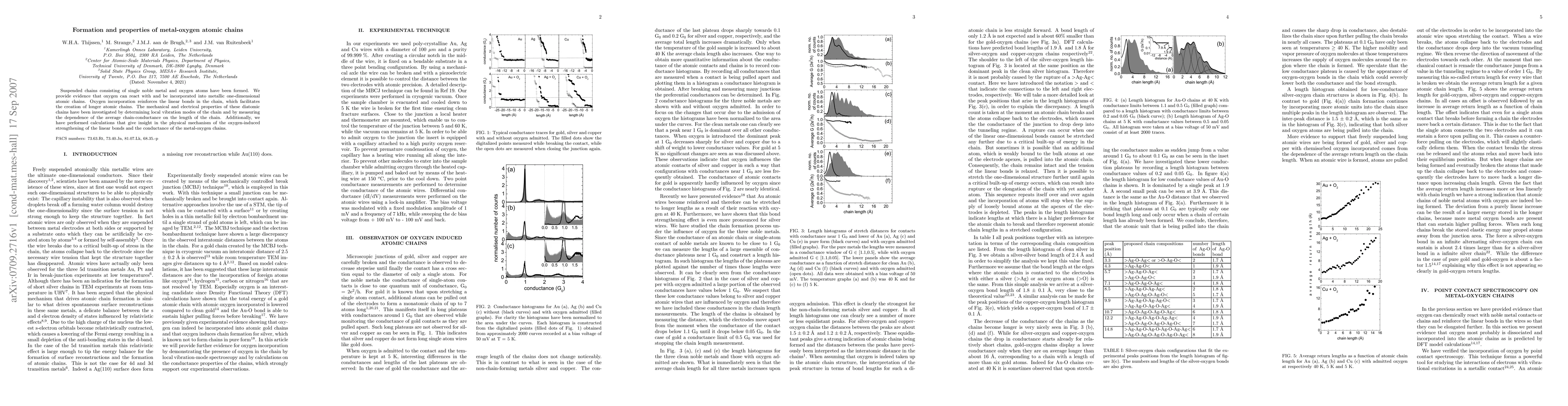 Suspended metal-oxygen atomic chains are formed, demonstrating oxygen's ability to incorporate into metallic one-dimensional structures, reinforcing linear bonds. Investigations reveal enhanced mechanical and electrical properties, with insights into oxygen-induced strengthening and conductance mechanisms.