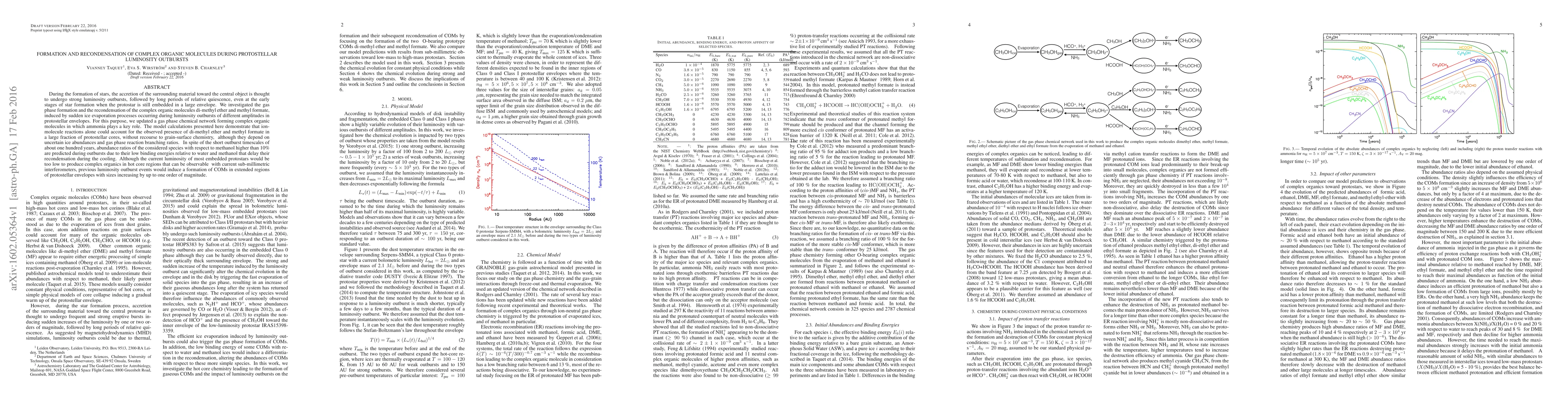 This research investigates the formation and recondensation of complex organic molecules (COMs) like di-methyl ether and methyl formate during protostellar luminosity outbursts, finding that ion-molecule reactions can produce these molecules without grain-surface chemistry. Despite short outburst durations, these species can reach abundances over 10% relative to methanol due to delayed recondensation.