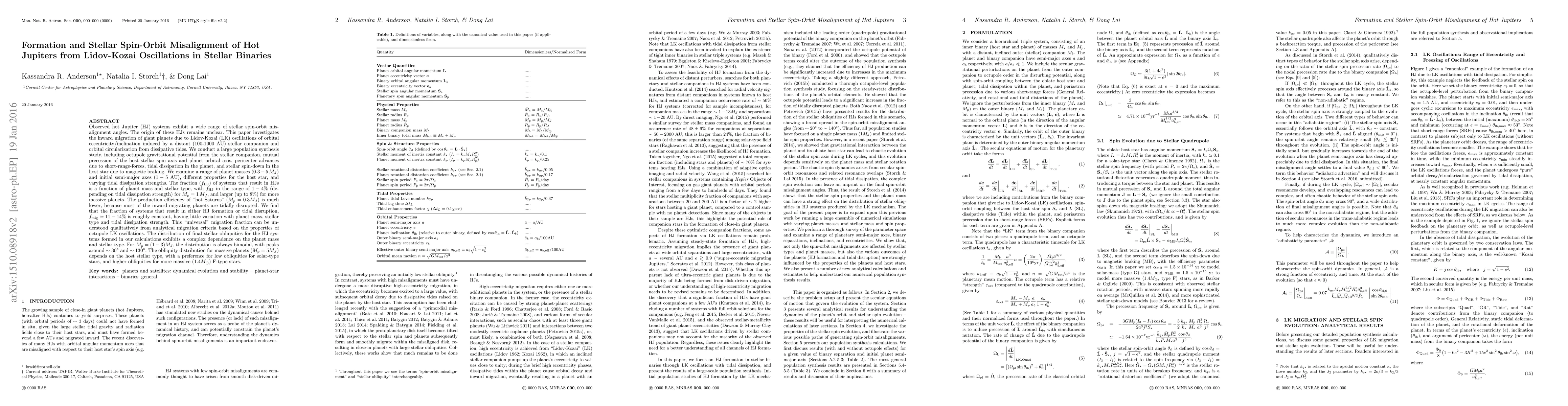 This paper explores the formation and spin-orbit misalignment of hot Jupiters through Lidov-Kozai oscillations in stellar binaries, finding that the fraction of systems resulting in hot Jupiters is dependent on planet mass and stellar type, with a "universal" migration fraction of 11-14%. The final stellar obliquities show bimodal distributions for 1-3 Jupiter masses, with variations based on the host star's mass.