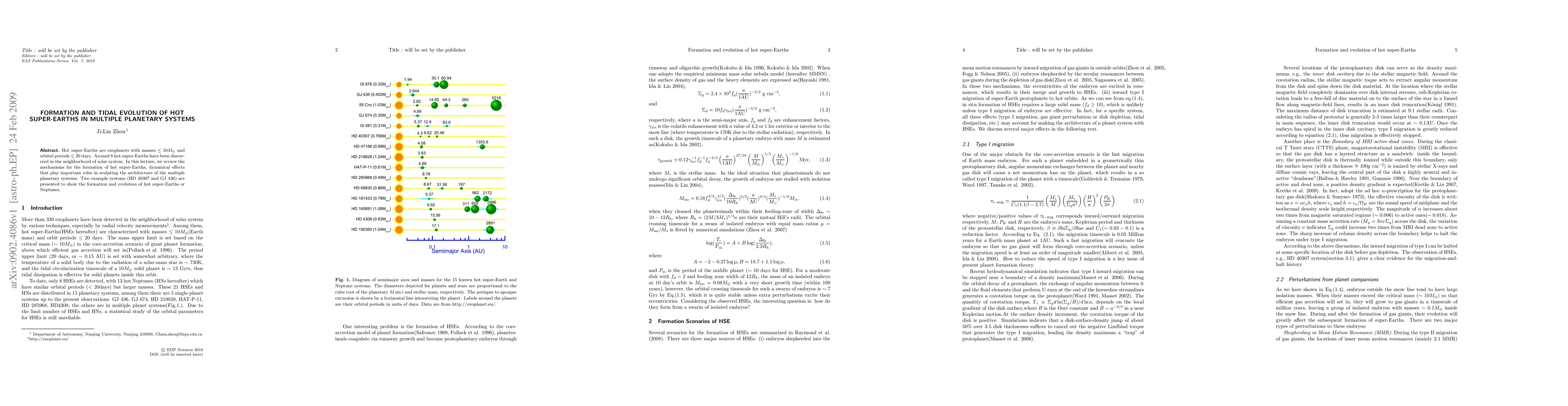 This paper reviews the formation and tidal evolution of hot super-Earths, focusing on the mechanisms that create these exoplanets and the dynamical effects shaping their systems. It uses examples from HD 40307 and GJ 436 to illustrate these processes.