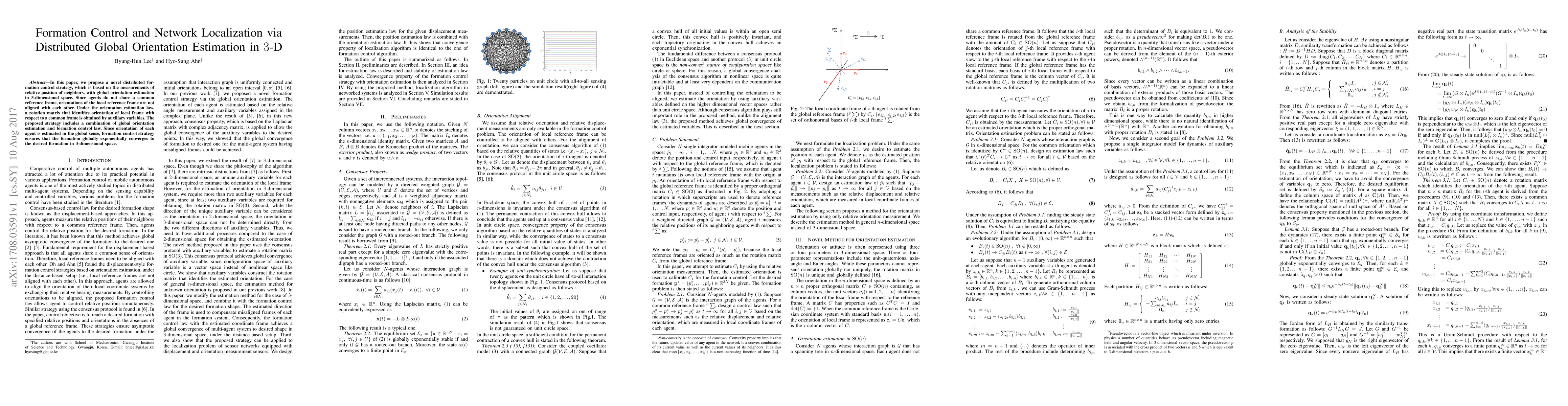 This paper introduces a novel distributed formation control strategy for 3-D agents, combining global orientation estimation with formation control to ensure global exponential convergence to a desired formation, even when agents lack a common reference frame. The strategy uses a rotation matrix derived from auxiliary variables to align local frames with a global frame.