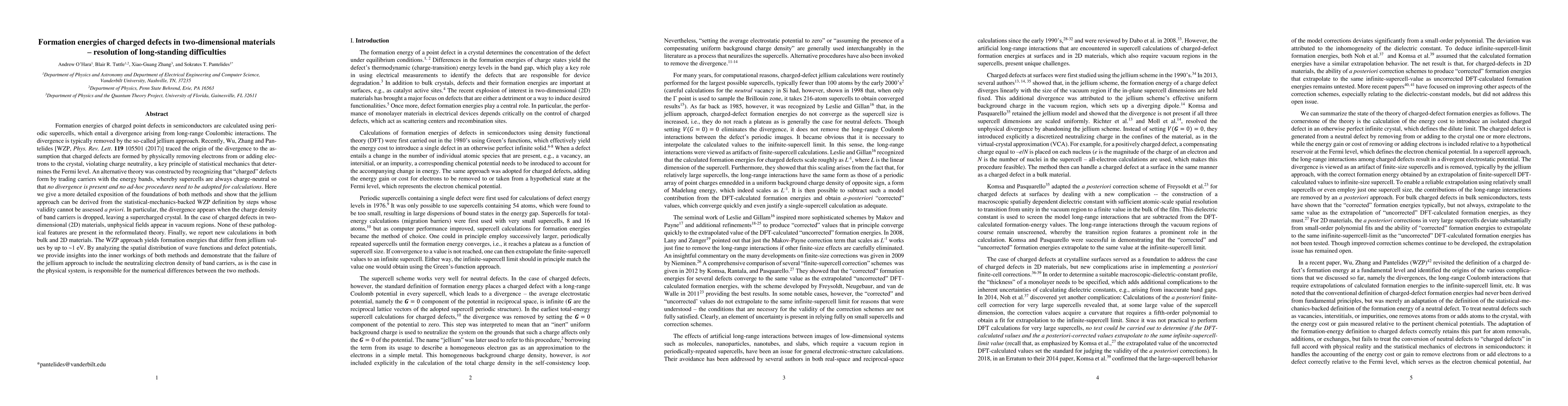 Formation energies of charged point defects in semiconductors are calculated using periodic supercells, which entail a divergence arising from long-range Coulombic interactions. The divergence is typically removed by the so-called jellium approach. Recently, Wu, Zhang and Pantelides [WZP, Phys. Rev. Lett. 119, 105501 (2017)] traced the origin of the divergence to the assumption that charged defects are formed by physically removing electrons from or adding electrons to the crystal, violating charge neutrality, a key principle of statistical mechanics that determines the Fermi level. An alternative theory was constructed by recognizing that "charged" defects form by trading carriers with the energy bands, whereby supercells are always charge-neutral so that no divergence is present and no ad-hoc procedures need to be adopted for calculations. Here we give a more detailed exposition of the foundations of both methods and show that the jellium approach can be derived from the statistical-mechanics-backed WZP definition by steps whose validity cannot be assessed a priori. In particular, the divergence appears when the charge density of band carriers is dropped, leaving a supercharged crystal. In the case of charged defects in two-dimensional (2D) materials, unphysical fields appear in vacuum regions. None of these pathological features are present in the reformulated theory. Finally, we report new calculations in both bulk and 2D materials. The WZP approach yields formation energies that differ from jellium values by up to ~1 eV. By analyzing the spatial distribution of wave functions and defect potentials, we provide insights into the inner workings of both methods and demonstrate that the failure of the jellium approach to include the neutralizing electron density of band carriers, as is the case in the physical system, is responsible for the numerical differences between the two methods.