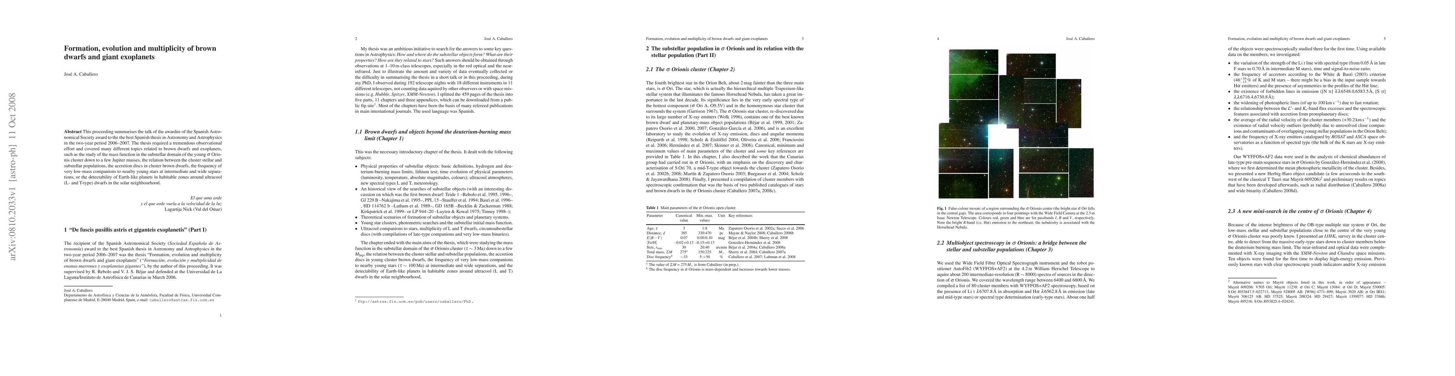 This paper summarizes the award-winning thesis on the formation and evolution of brown dwarfs and giant exoplanets, focusing on observational studies of the Sigma Orionis cluster, accretion discs, and the frequency of low-mass companions to nearby young stars. It also explores the detectability of Earth-like planets around ultracool dwarfs.