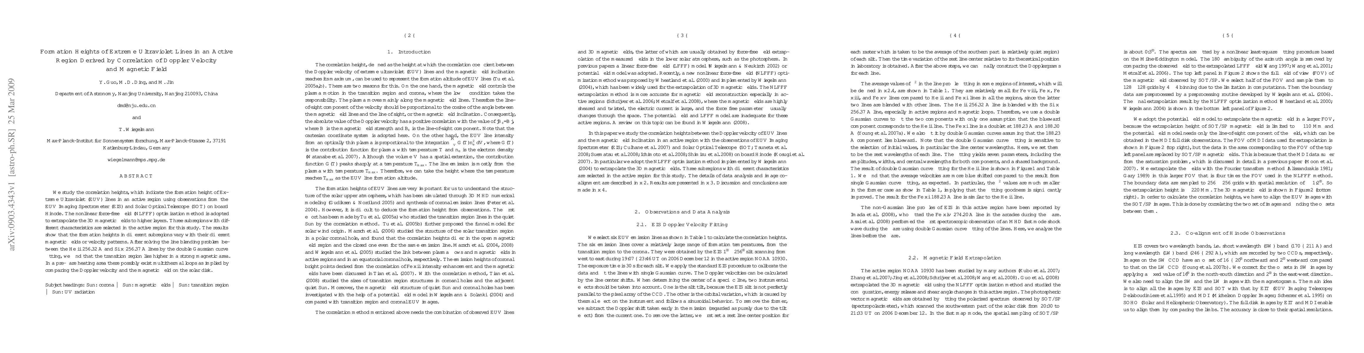 We study the correlation heights, which indicate the formation height of Extreme Ultraviolet (EUV) lines in an active region using observations from the EUV Imaging Spectrometer (EIS) and Solar Optical Telescope (SOT) on board \emph{Hinode}. The nonlinear force-free field (NLFFF) optimization method is adopted to extrapolate the 3D magnetic fields to higher layers. Three subregions with different characteristics are selected in the active region for this study. The results show that the formation heights in different subregions vary with their different magnetic fields or velocity patterns. After solving the line blending problem between the He {\sc \romannumeral 2} 256.32 \AA and Si {\sc \romannumeral 10} 256.37 \AA lines by the double Gaussian curve fitting, we find that the transition region lies higher in a strong magnetic area. In a pre-flare heating area there possibly exist multithermal loops as implied by comparing the Doppler velocity and the magnetic field on the solar disk.