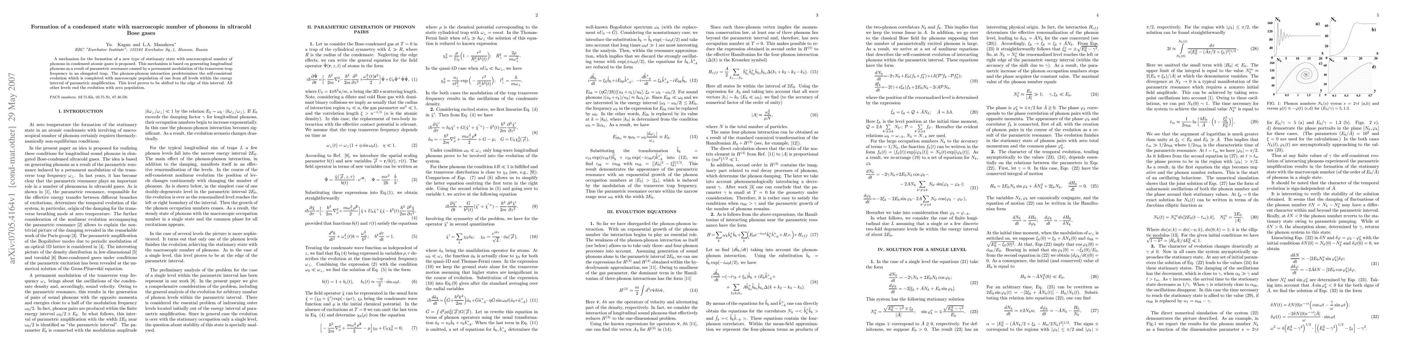 Researchers propose a mechanism for creating a condensed state with a large number of phonons in ultracold Bose gases through parametric resonance and phonon-phonon interactions.