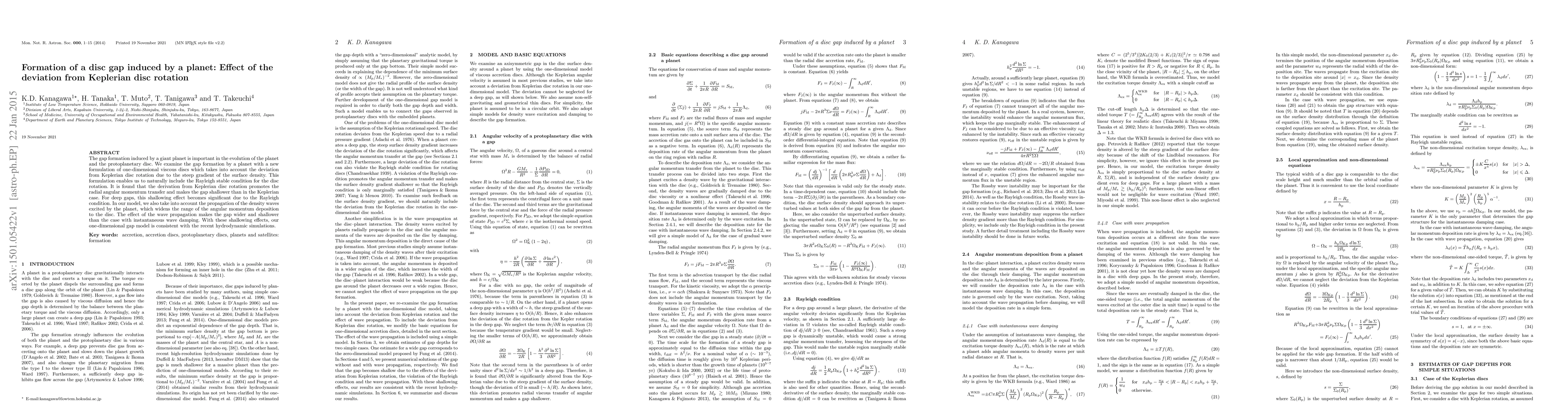 This paper investigates the formation of a planet-induced gap in a protoplanetary disc using a new one-dimensional viscous disc model that considers deviations from Keplerian rotation. The model shows that non-Keplerian rotation enhances radial angular momentum transfer, making the gap shallower, especially under Rayleigh stable conditions.