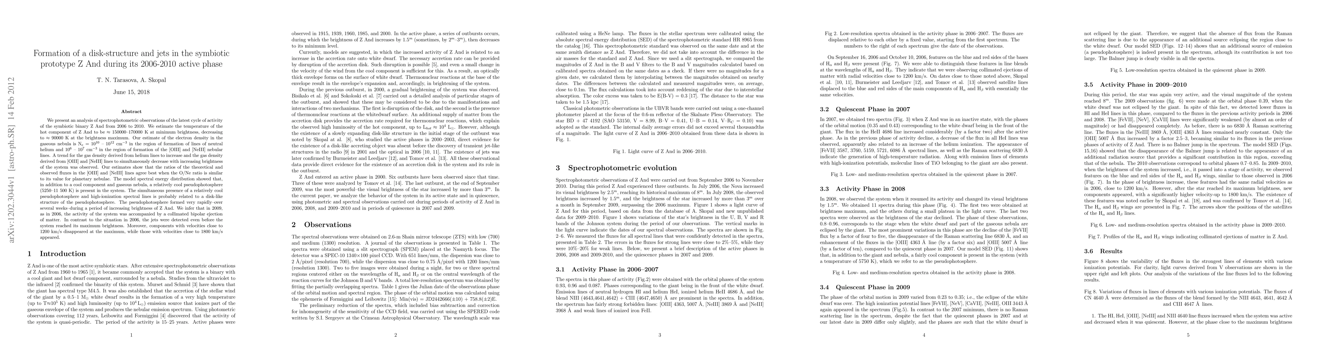 The symbiotic binary Z And exhibited a disk-structure and jets during its 2006-2010 active phase, with temperatures of the hot component ranging from 150000 to 90000 K, and electron densities in the gaseous nebula varying between 10^10 to 10^7 cm^-3.
