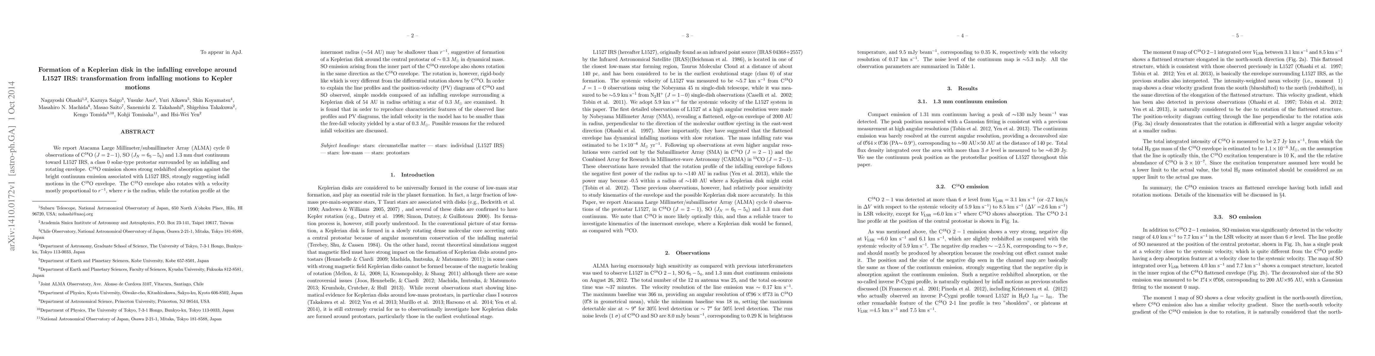 This paper reports ALMA observations of L1527 IRS, revealing an infalling and rotating envelope around a class 0 protostar. The study finds evidence of a Keplerian disk formation within the envelope, indicated by rotation profiles proportional to $r^{-1}$, suggesting the transition from infall to Keplerian motions around a central protostar of 0.3 Mo.