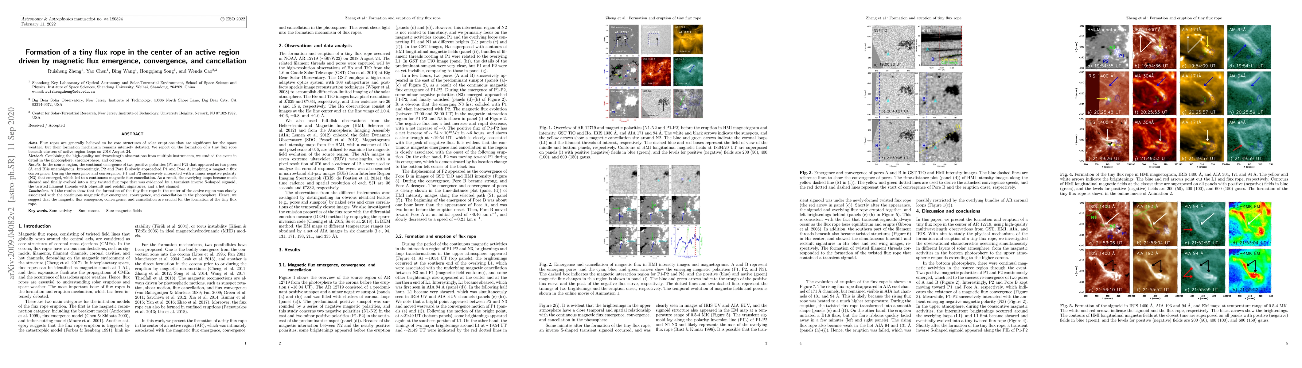 This study details the formation of a tiny flux rope in an active region, driven by the emergence, convergence, and cancellation of magnetic flux. Observations reveal that the continual emergence of two positive polarities led to magnetic flux convergence and cancellation, resulting in the formation of a twisted flux rope.