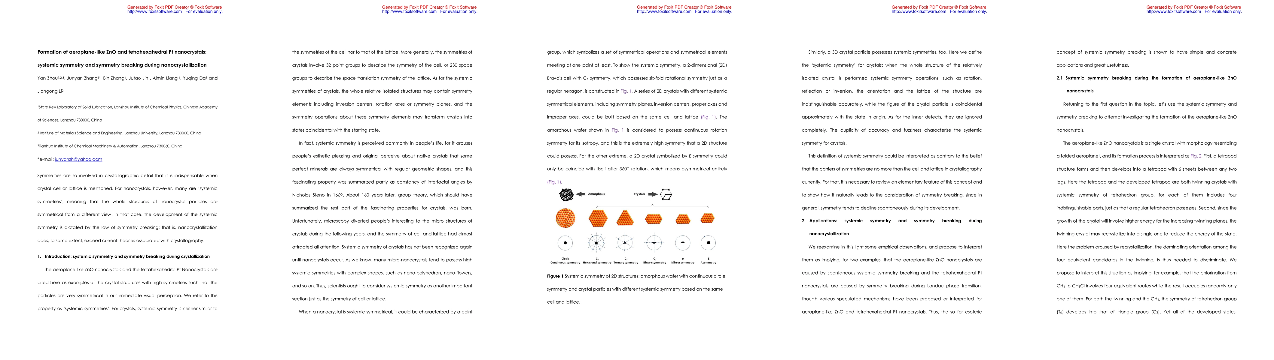 This paper investigates the formation of aeroplane-like ZnO and tetrahexahedral Pt nanocrystals, focusing on systemic symmetry and the phenomenon of symmetry breaking during their crystallization. It highlights how nanocrystallization processes often exceed traditional crystallographic theories.