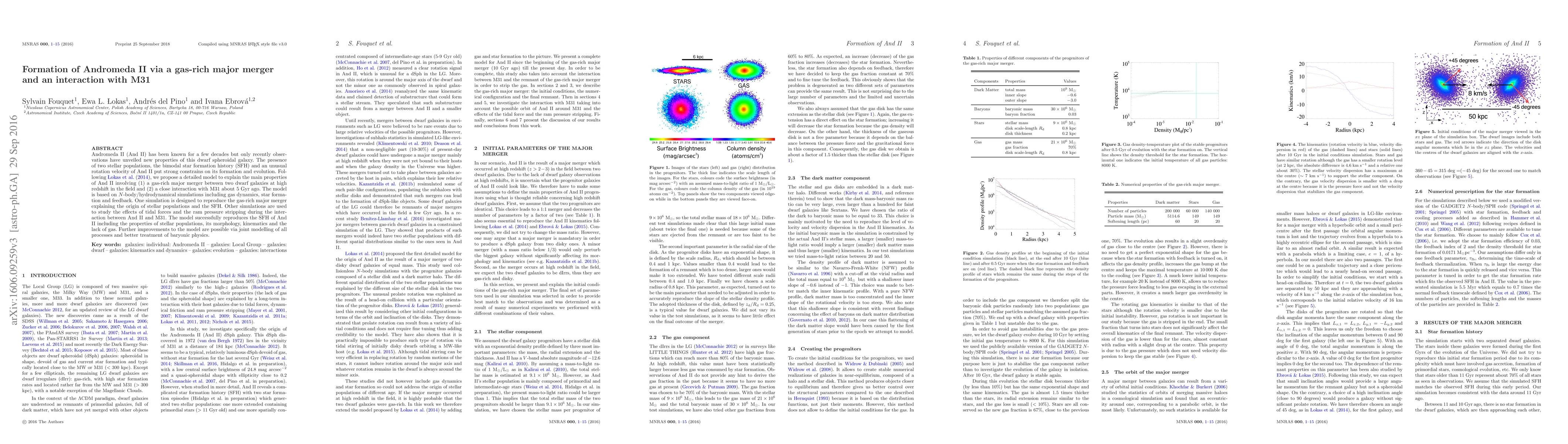 Andromeda II (And II) has been known for a few decades but only recently observations have unveiled new properties of this dwarf spheroidal galaxy. The presence of two stellar populations, the bimodal star formation history (SFH) and an unusual rotation velocity of And II put strong constrains on its formation and evolution. Following Lokas et al. (2014), we propose a detailed model to explain the main properties of And II involving (1) a gas-rich major merger between two dwarf galaxies at high redshift in the field and (2) a close interaction with M31 about 5 Gyr ago. The model is based on N-body/hydrodynamical simulations including gas dynamics, star formation and feedback. One simulation is designed to reproduce the gas-rich major merger explaining the origin of stellar populations and the SFH. Other simulations are used to study the effects of tidal forces and the ram pressure stripping during the interaction between And II and M31. The model successfully reproduces the SFH of And II including the properties of stellar populations, its morphology, kinematics and the lack of gas. Further improvements to the model are possible via joint modelling of all processes and better treatment of baryonic physics.