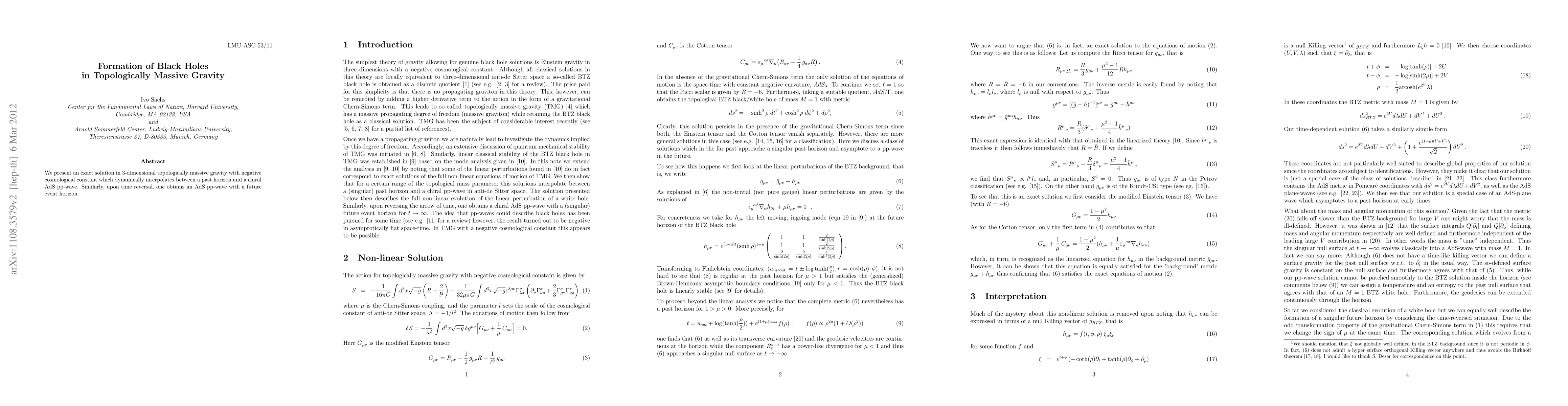 We present an exact solution in 3-dimensional topologically massive gravity with negative cosmological constant which dynamically interpolates between a past horizon and a chiral AdS pp-wave. Similarly, upon time reversal, one obtains an AdS pp-wave with a future event horizon