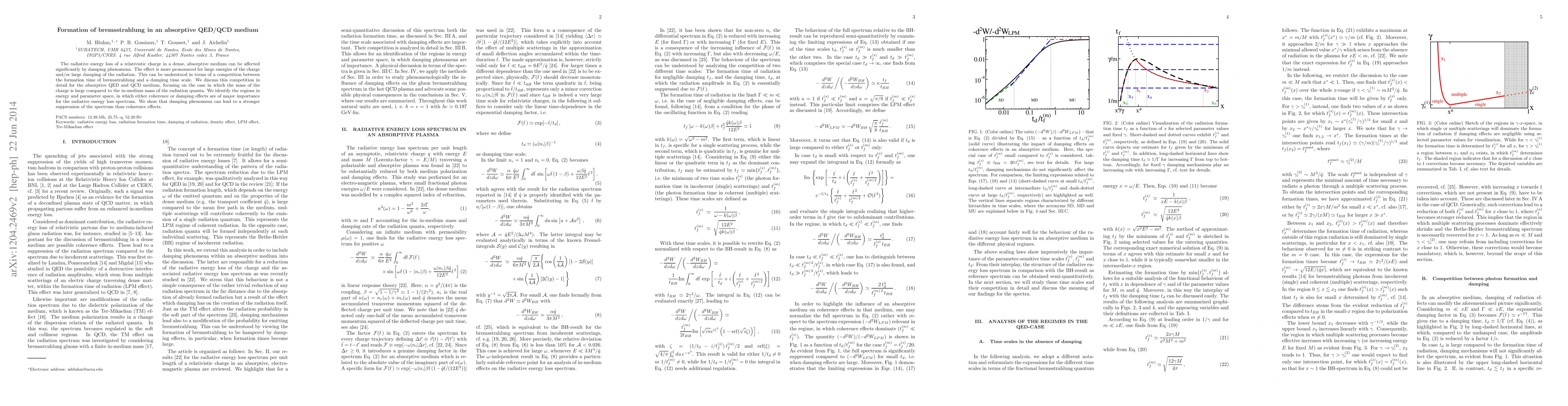 This paper investigates the radiative energy loss of relativistic charges in dense, absorptive QED/QCD media, emphasizing the competition between bremsstrahlung formation and damping times. It identifies regions where damping effects significantly suppress the energy loss spectrum compared to coherence effects.